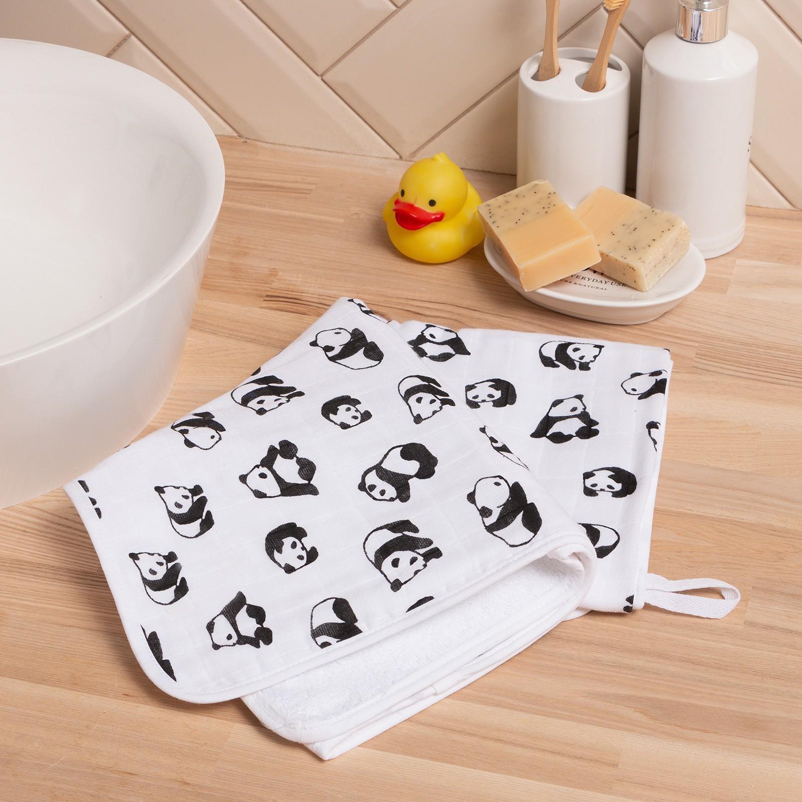 Полотенце детское Крошка Я «Панды» 50х90 см, 100% хлопок, муслин 105 гр/м2, махра 300гр/м2