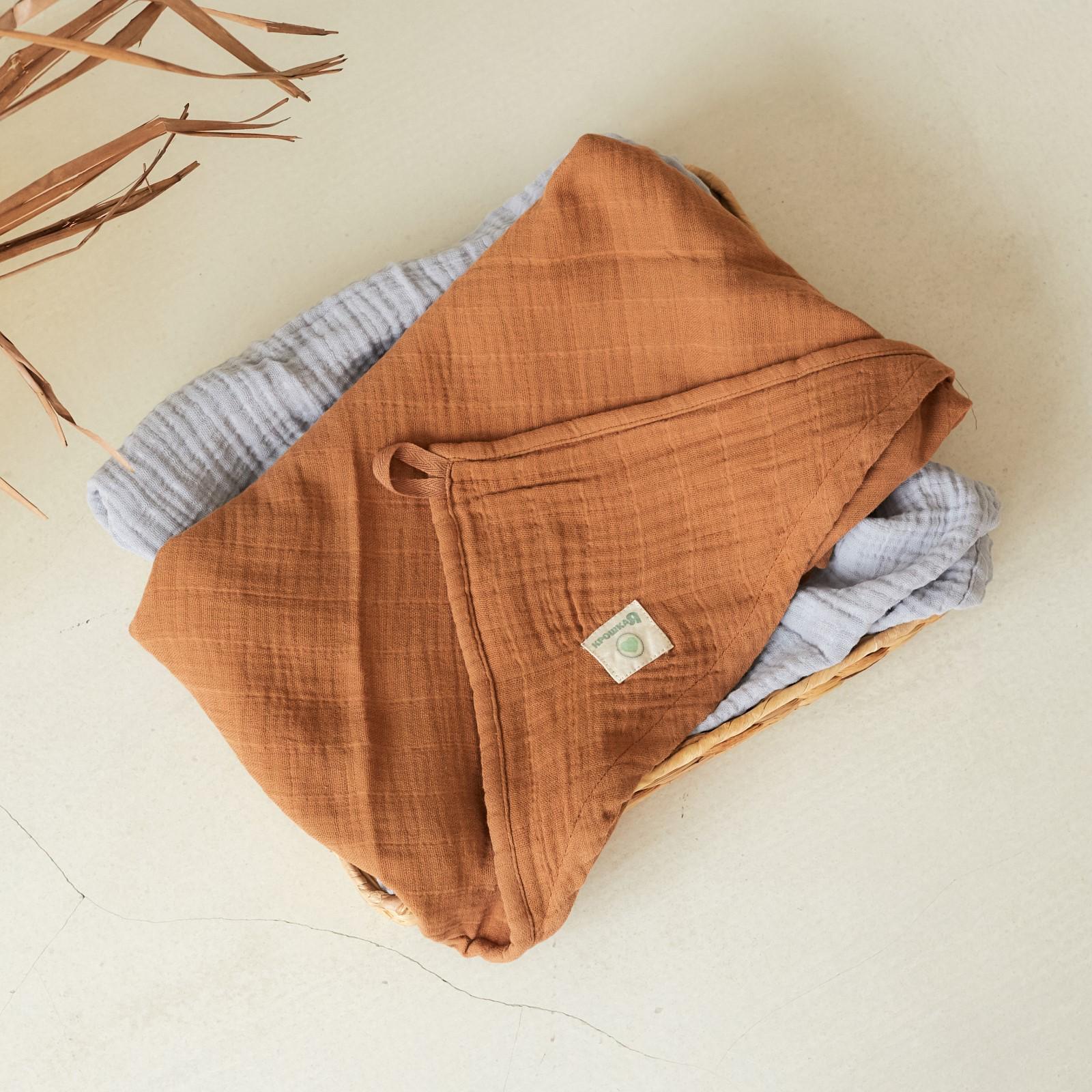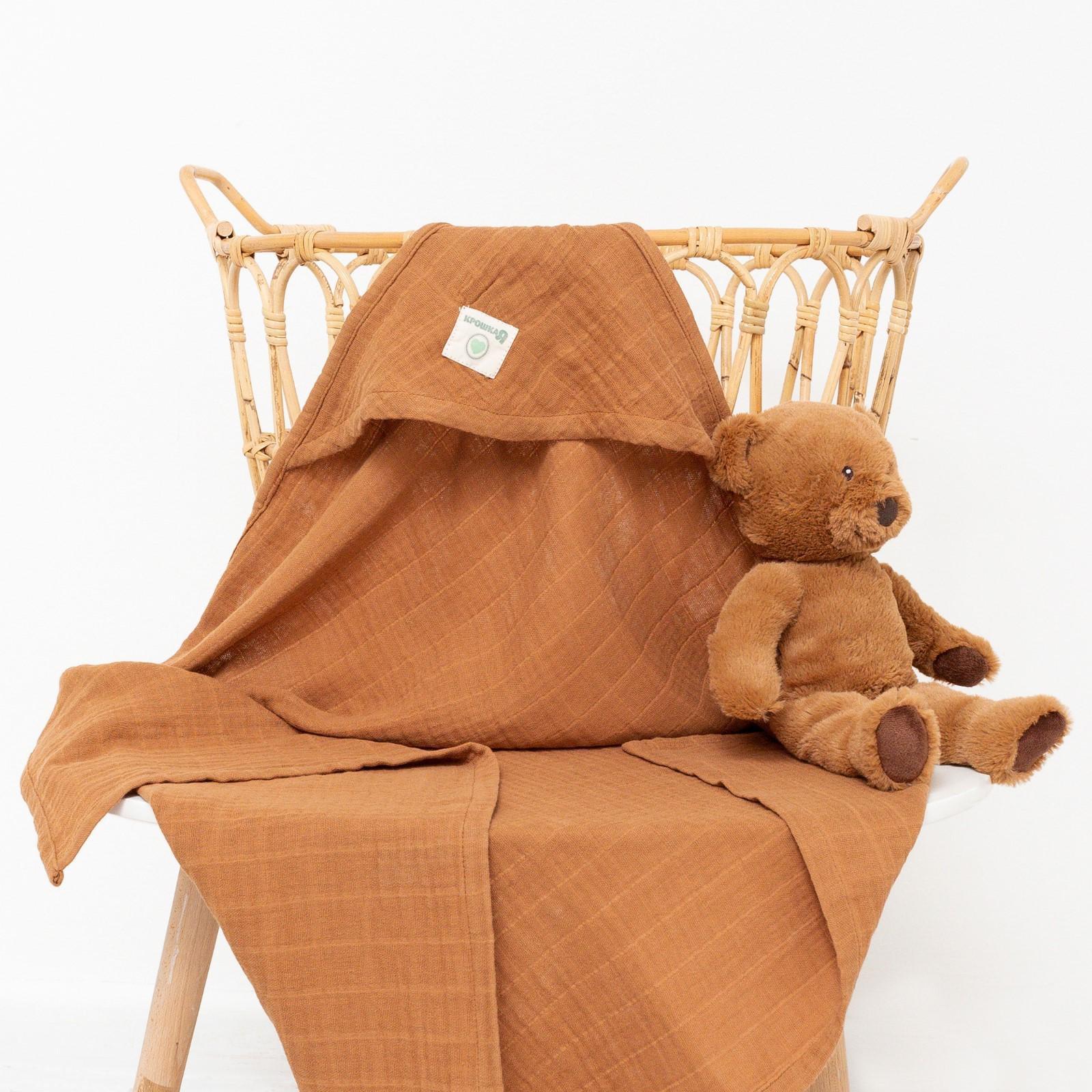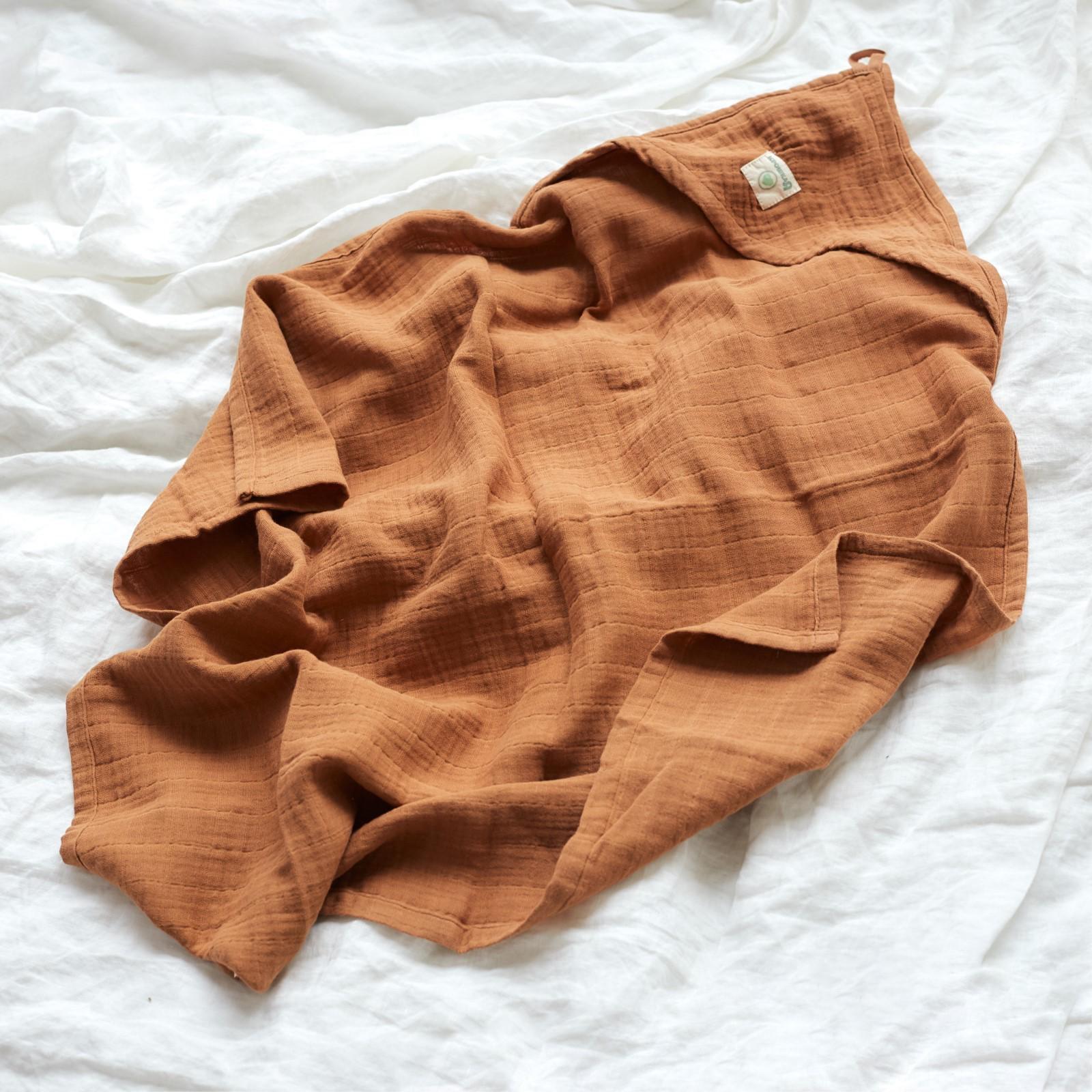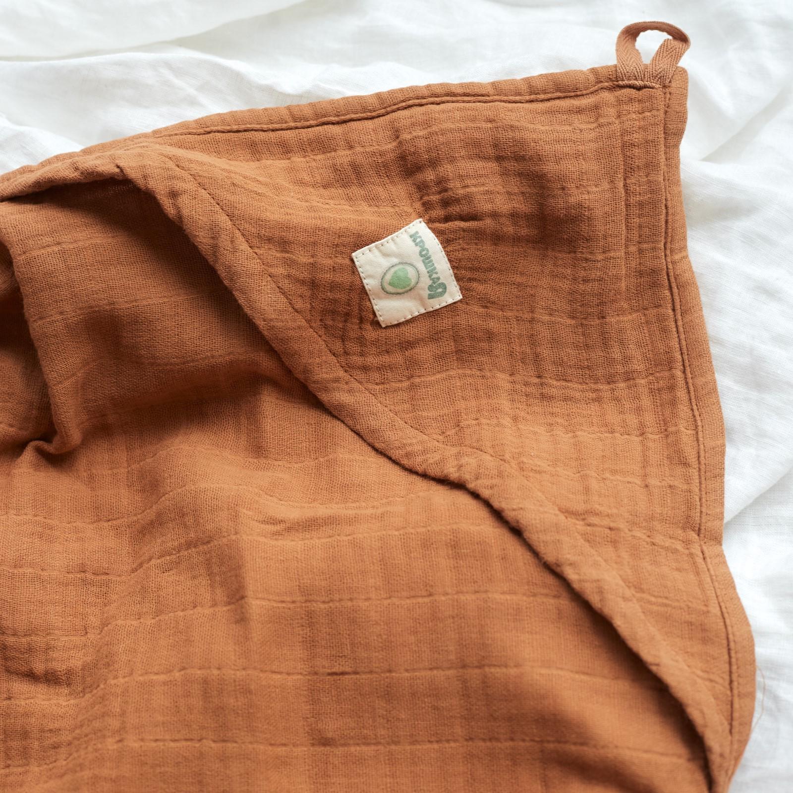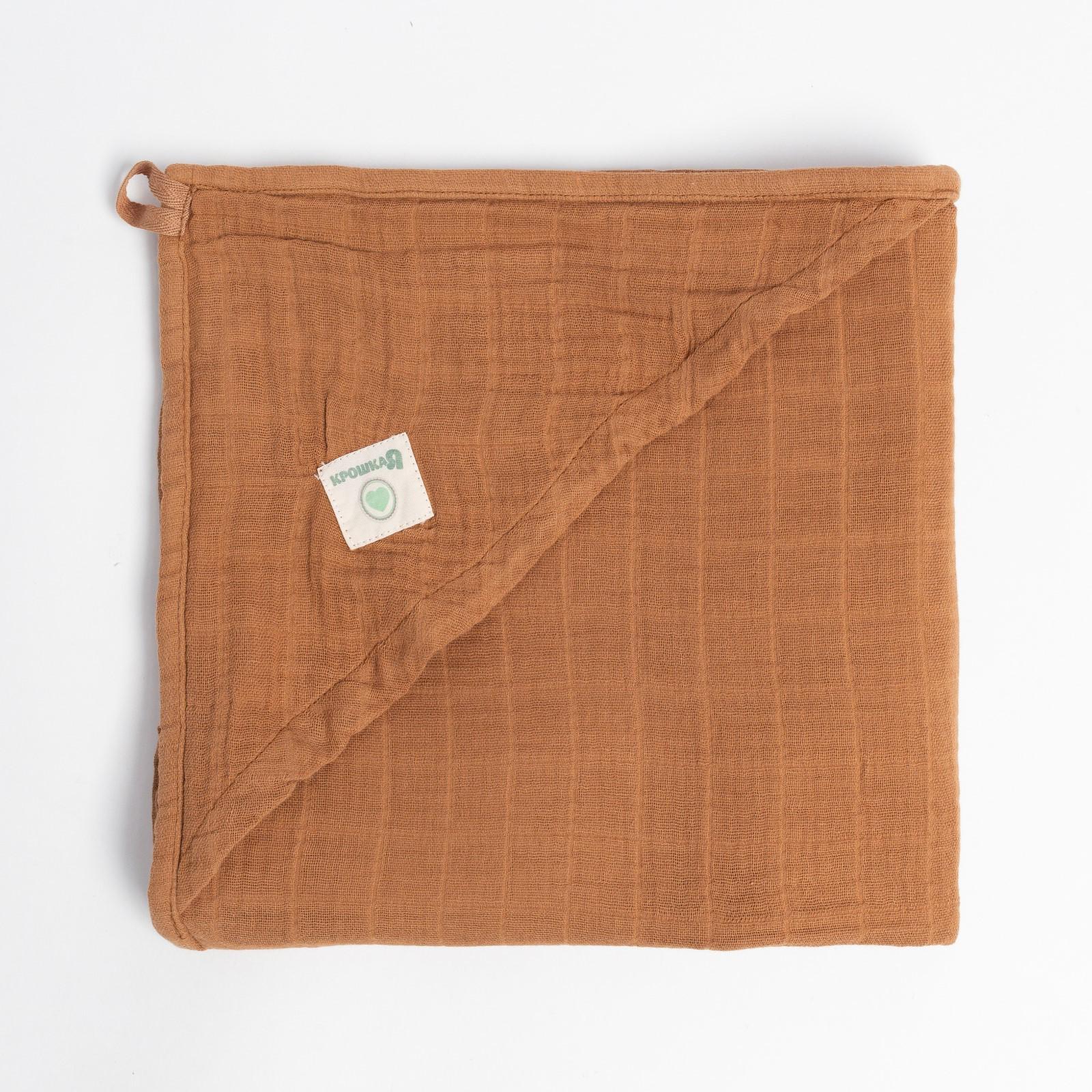 Полотенце уголок муслиновое Крошка Я, 75х75 см, цвет корицы, 100% хлопок, 3-сл, 180 гр/м2
