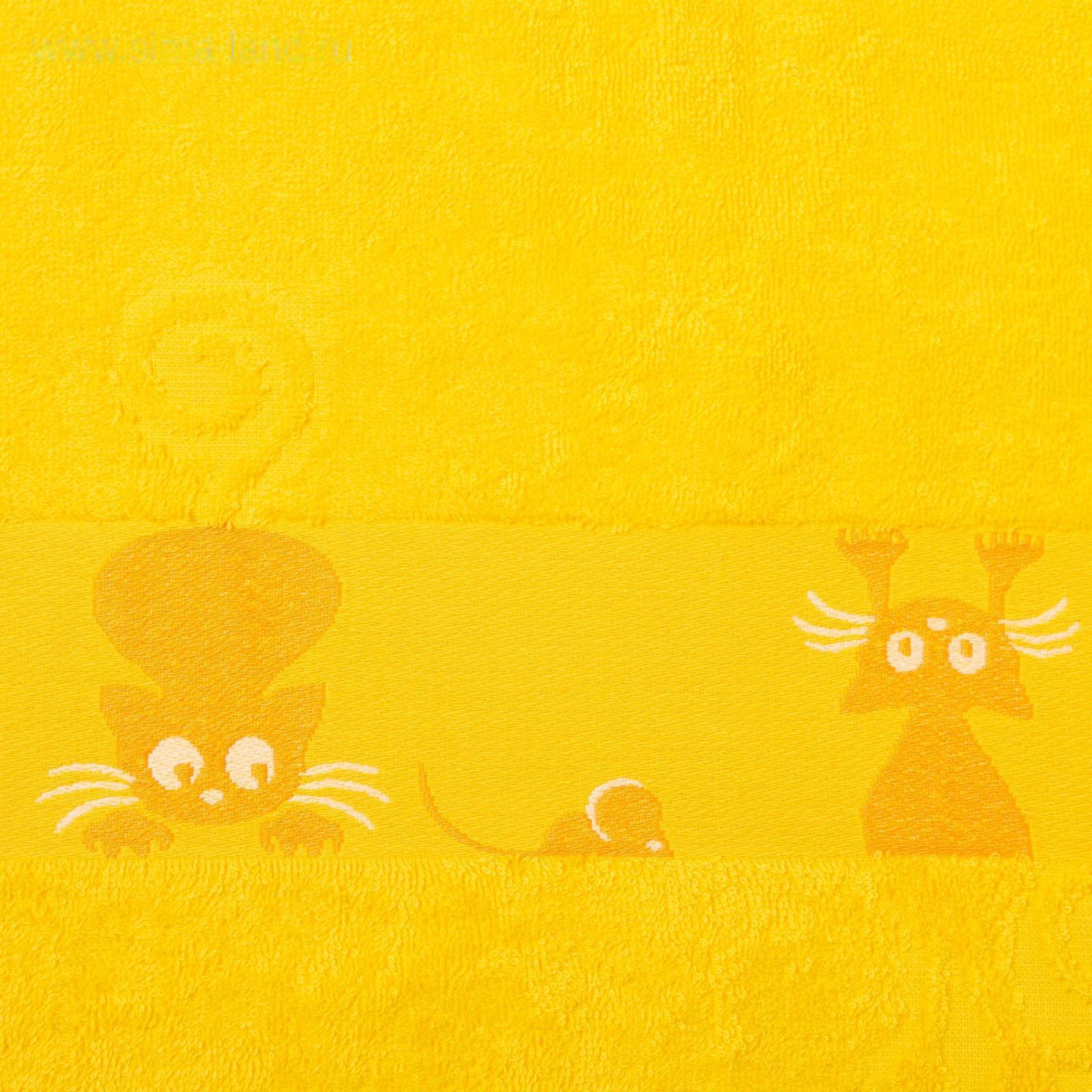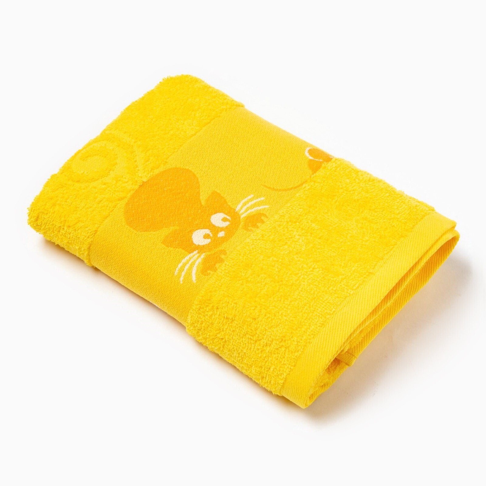 Полотенце махровое с бордюром «Кошки» цвет жёлтый, 50х90см