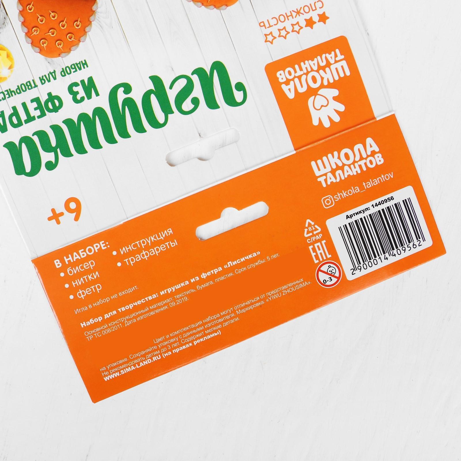 Набор для создания игрушки из фетра «Лисичка»