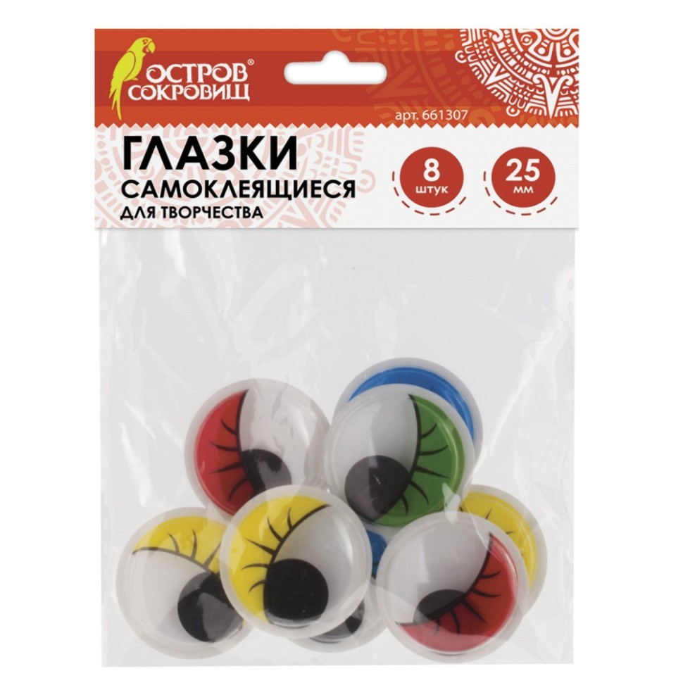 Набор декоративных глазок придаст уникальность и неповторимость игрушкам и прочим поделкам. Декоративные глазки позволят сделать игрушку живой и запоминающейся. Клеятся на любую поверхность. Форма: круглая. Количество штук в упаковке: 8. Вращающиеся: да. Реснички: отсутствуют. Тип крепления: самоклеящиеся. Длина: 25 мм. Ширина: 25 мм. Цвет: цветные. Материал: пластик. Возрастная группа: старше 3 лет. Упаковка: пакет с европодвесом Бренд - ОСТРОВ СОКРОВИЩ. Производитель - Китай. Артикул - 661307. Штрихкод - 4606224190440
