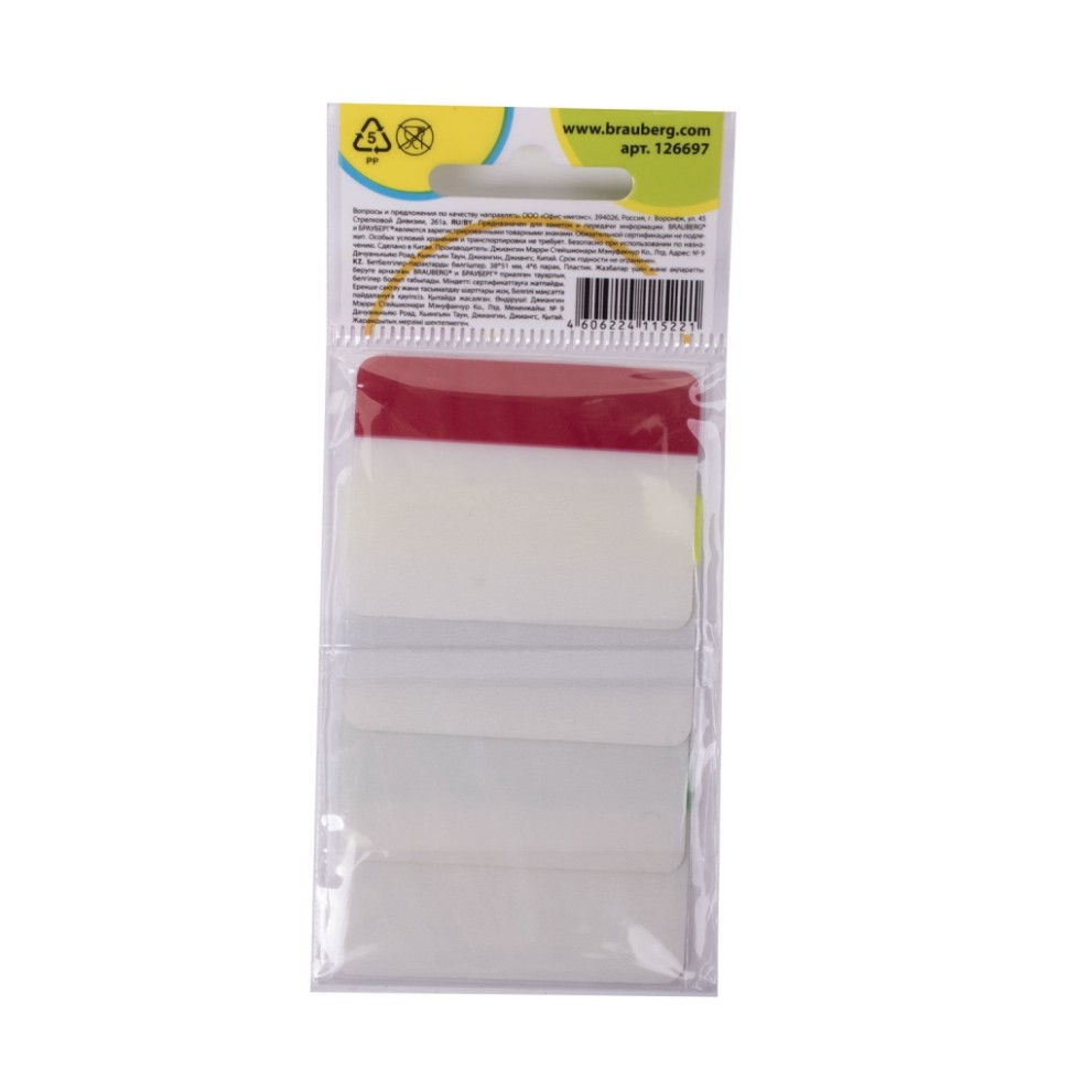 Закладки-выделители листов клейкие BRAUBERG пластиковые (126697)
