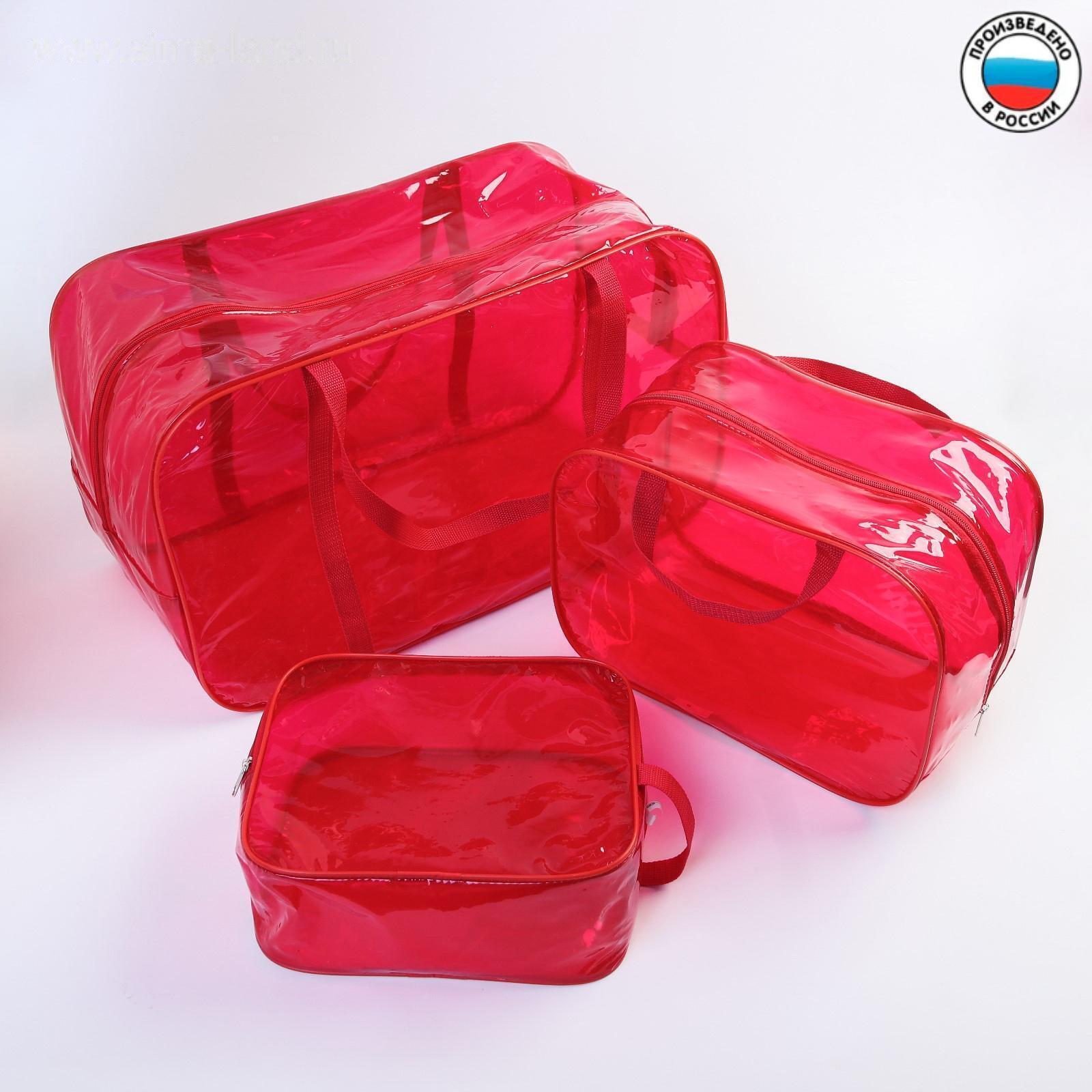 Набор сумок в роддом, 3 шт., цветной ПВХ, цвет красный