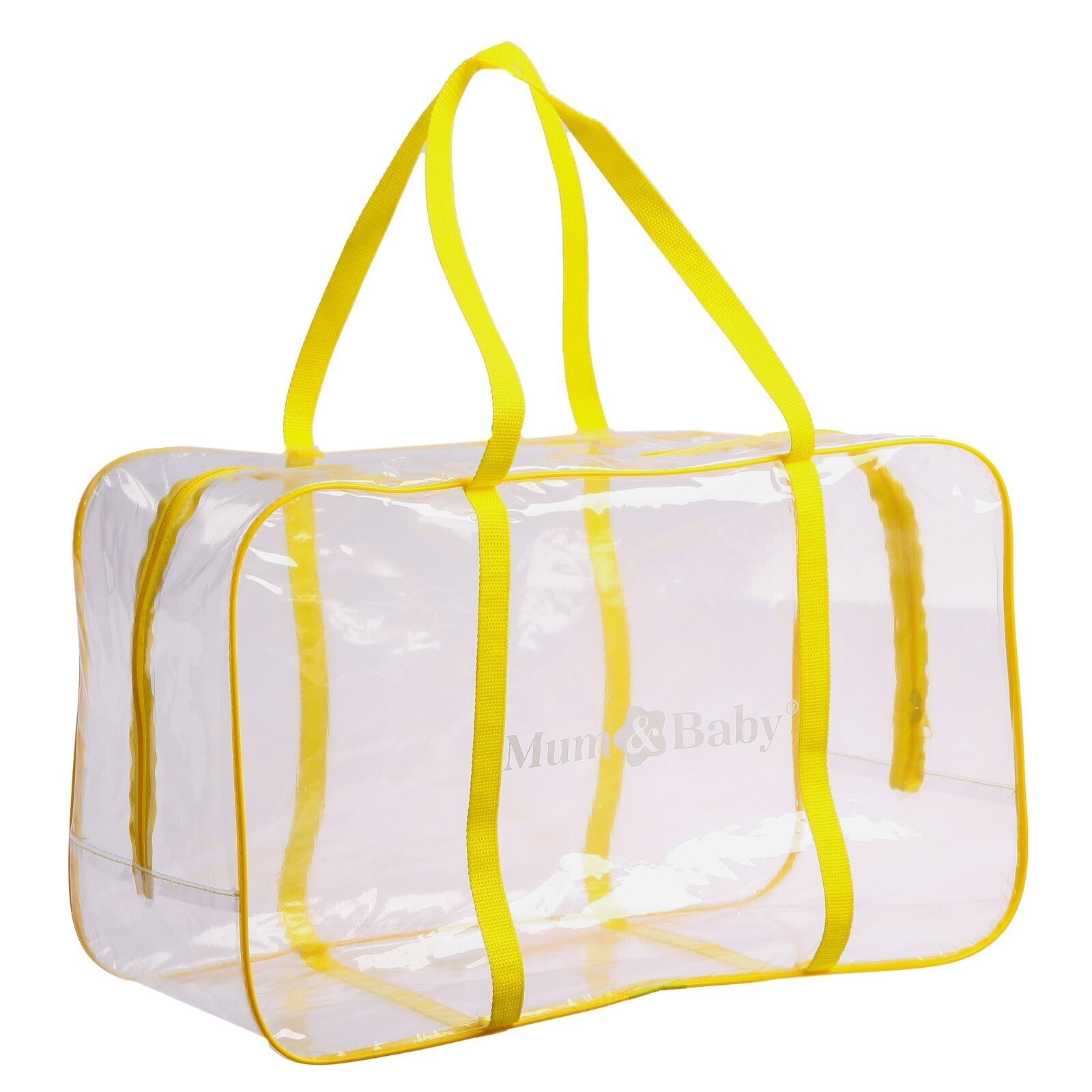 Сумка в роддом выполнена из прозрачного и легко моющегося материала, благодаря этому содержимое сумки будет легко найти.