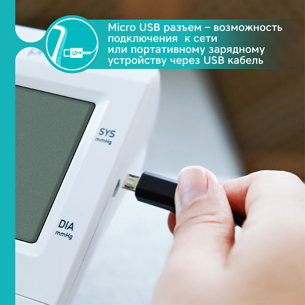 • Дополнительная комплектация комплект элементов питания, сетевой адаптер питания (с microUSB-разъемом), манжета (22-42 см), инструкция