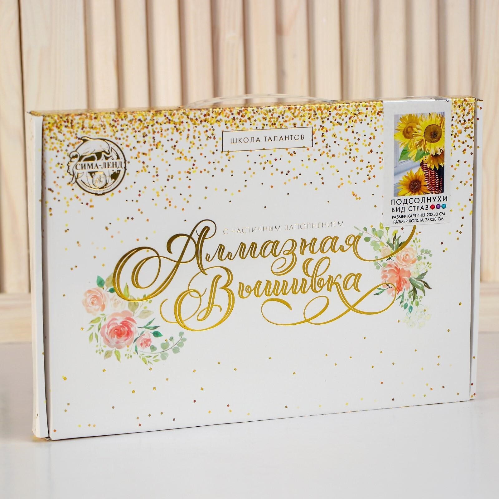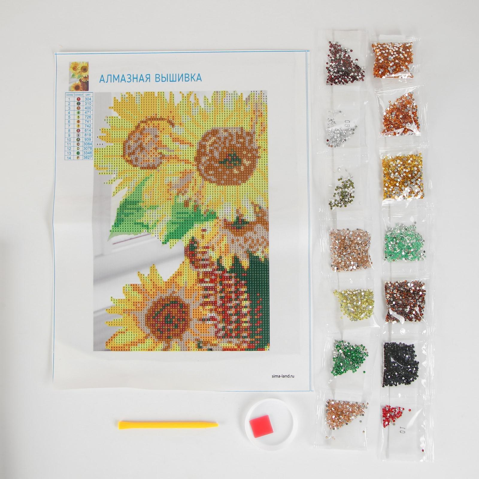 Алмазная мозаика с частичным заполнением «Подсолнухи» 20×30 см, на холсте