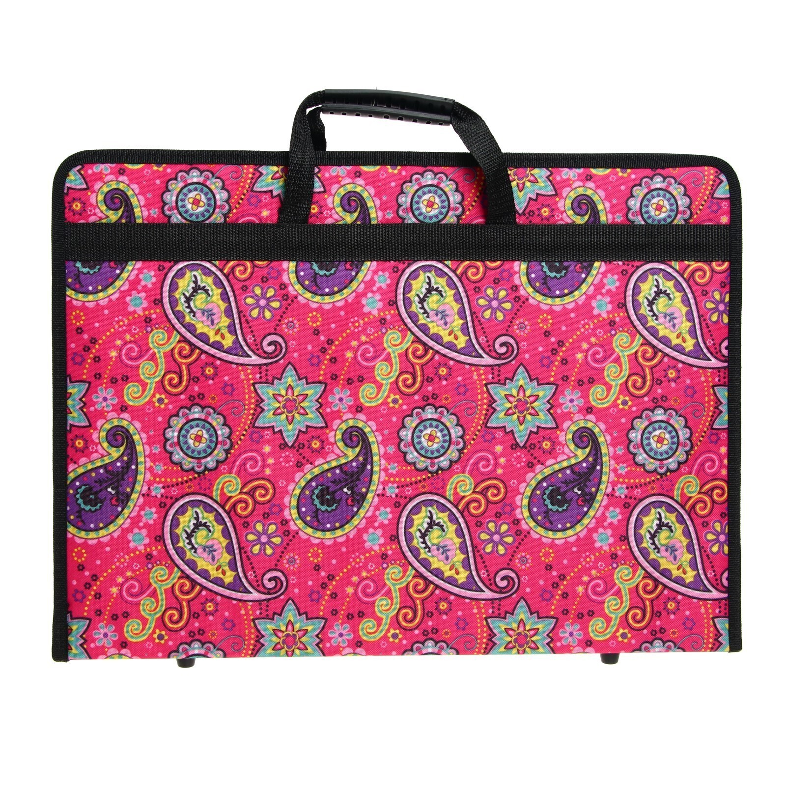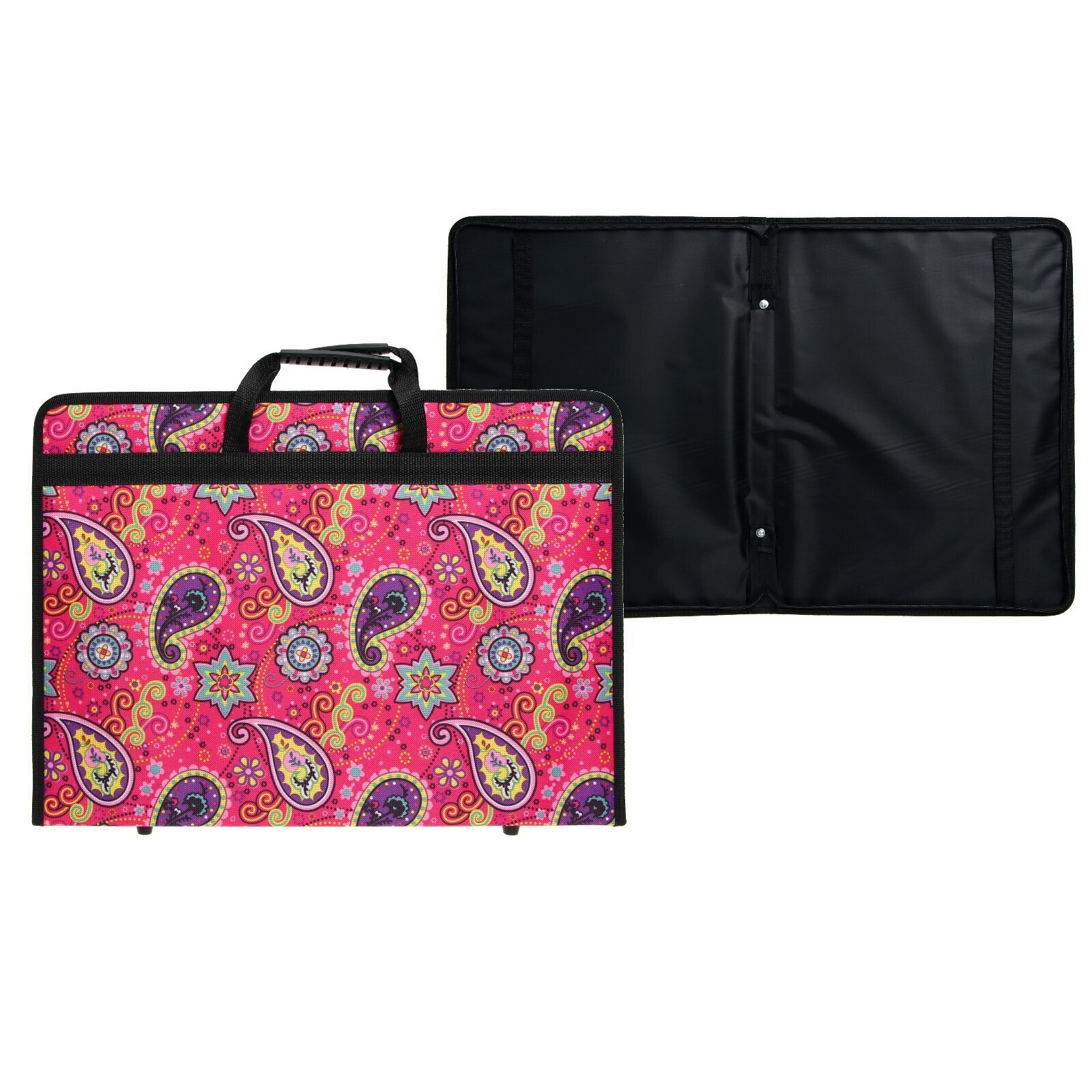 Папка для чертежей и рисунков А3, 40 мм, 470 х 350 мм, каркасная, с ручками, текстильная, "Вдохновение", Огурцы, розовая