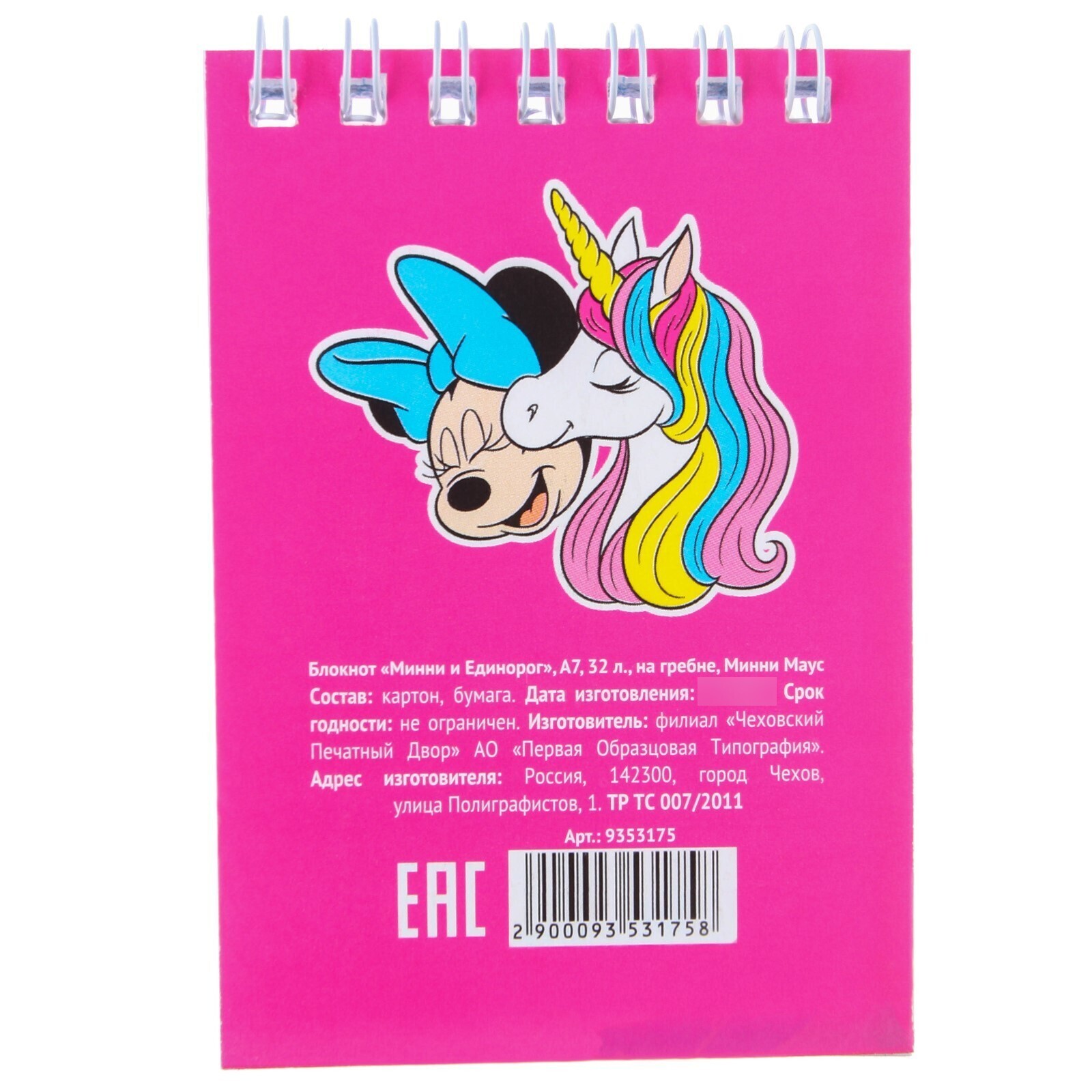 Блокнот А7 32 л, на гребне, Минни и Единорог, Минни Маус