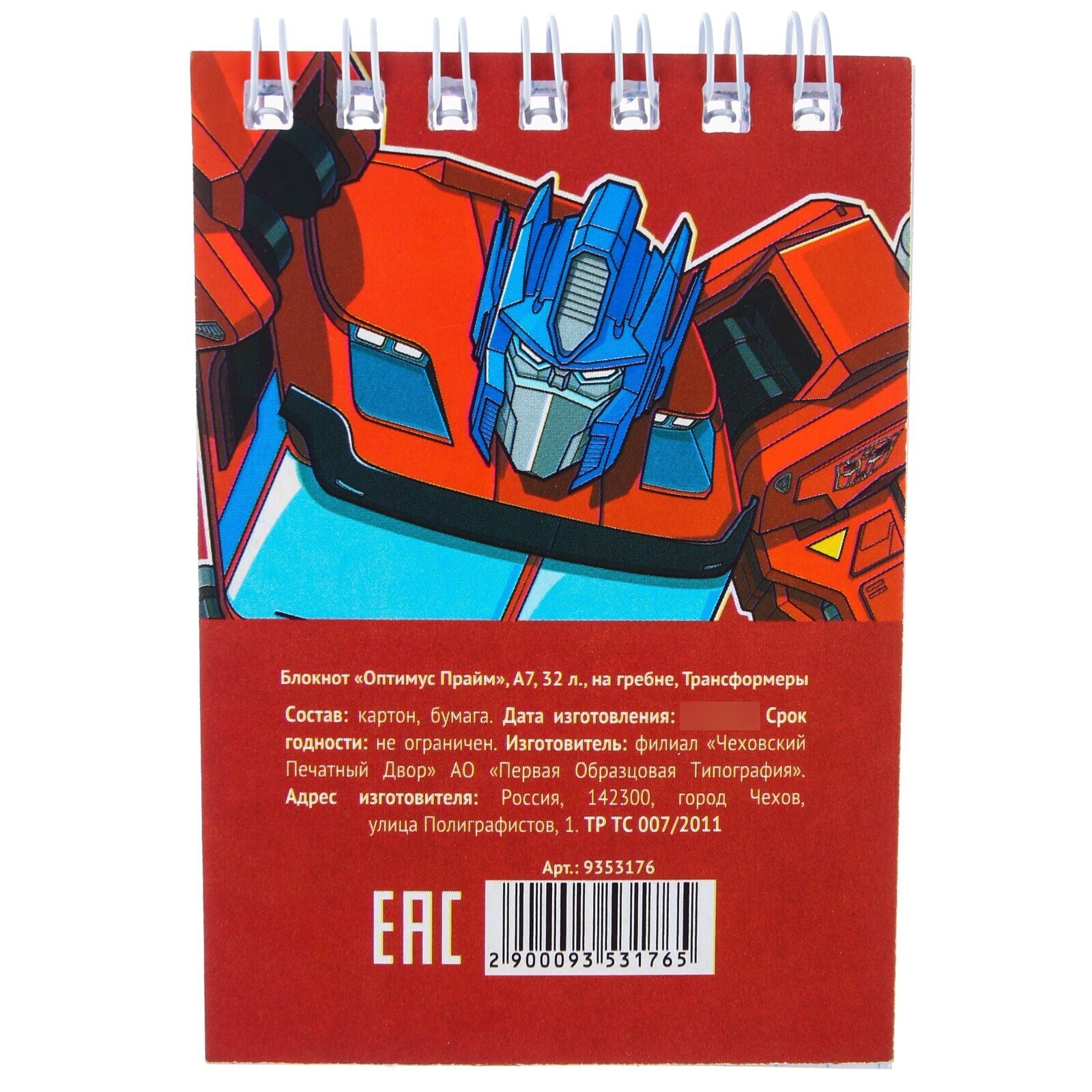 Блокнот А7 32 л, на гребне, Оптимус Прайм, Трансформеры