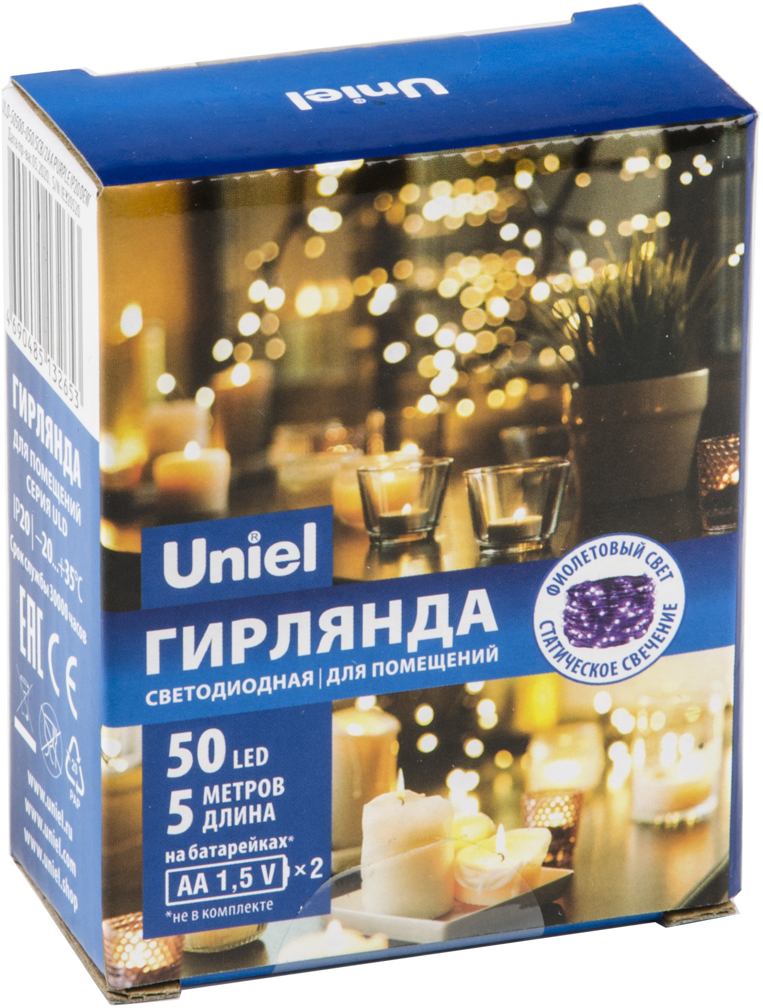 Гирлянда cветодиодная Uniel ULD-S0500-050/SCB/2AA Purple IP20 Dew