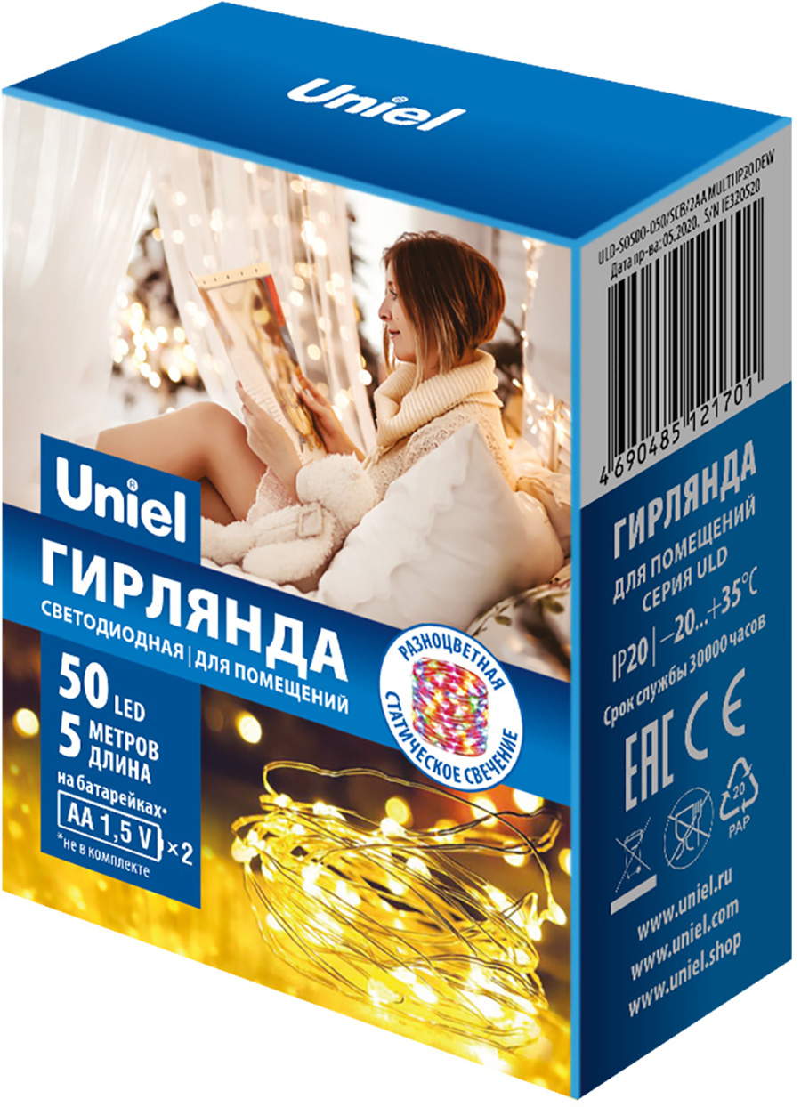 Гирлянда cветодиодная Uniel ULD-S0500-050/SCB/2AA Multi IP20 Dew