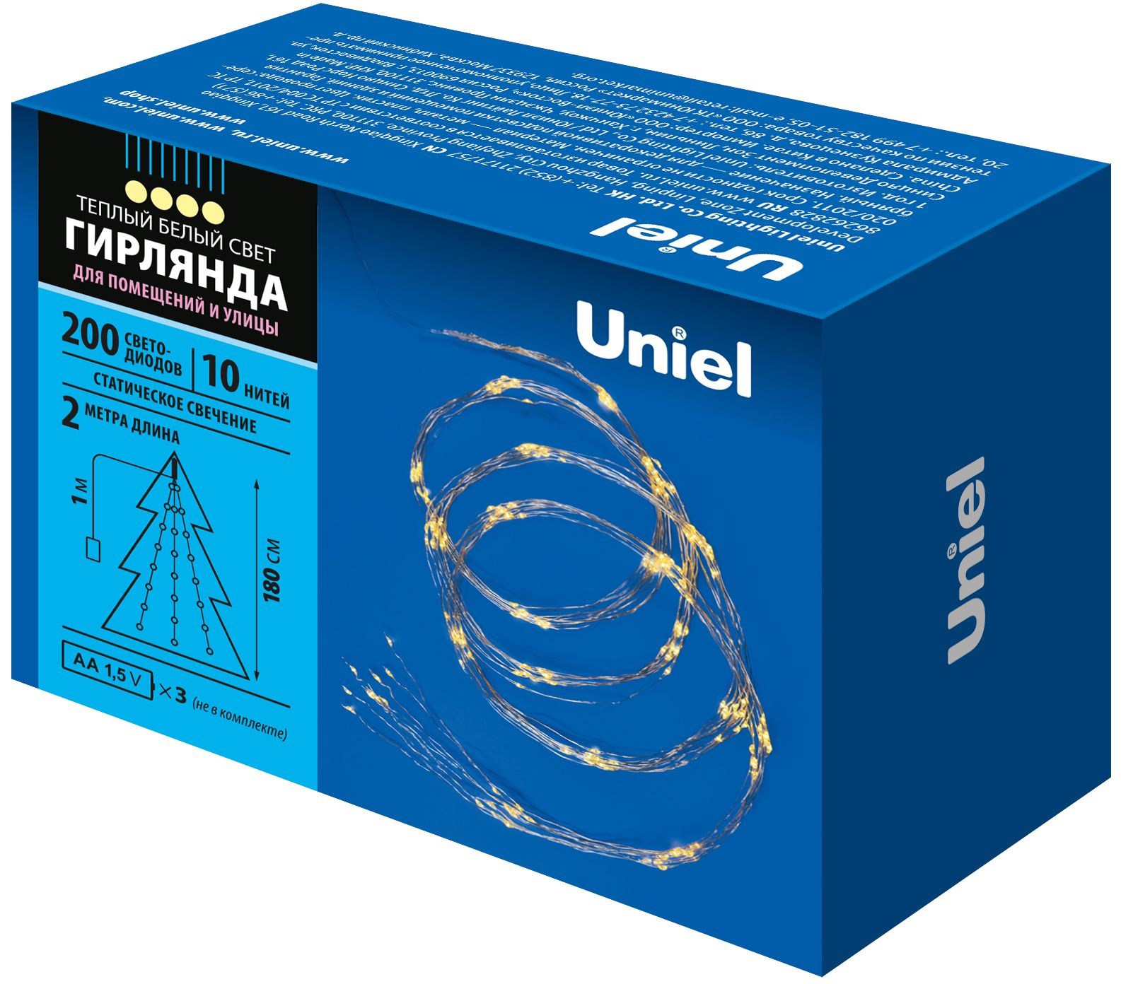 Гирлянда cветодиодная Uniel ULD-E0200-200/STB/3AA Warm White IP44