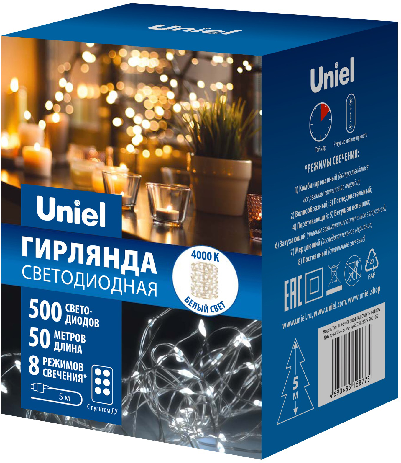 Гирлянда cветодиодная Uniel ULD-S5000-500/DTA/RC White IP44 Dew
