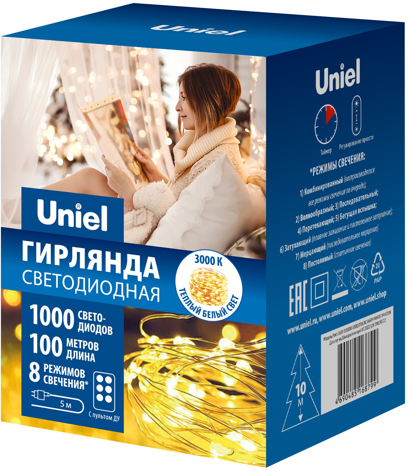 Гирлянда cветодиодная Uniel ULD-S10000-1000/DTA/RC Warm White IP44 Dew
