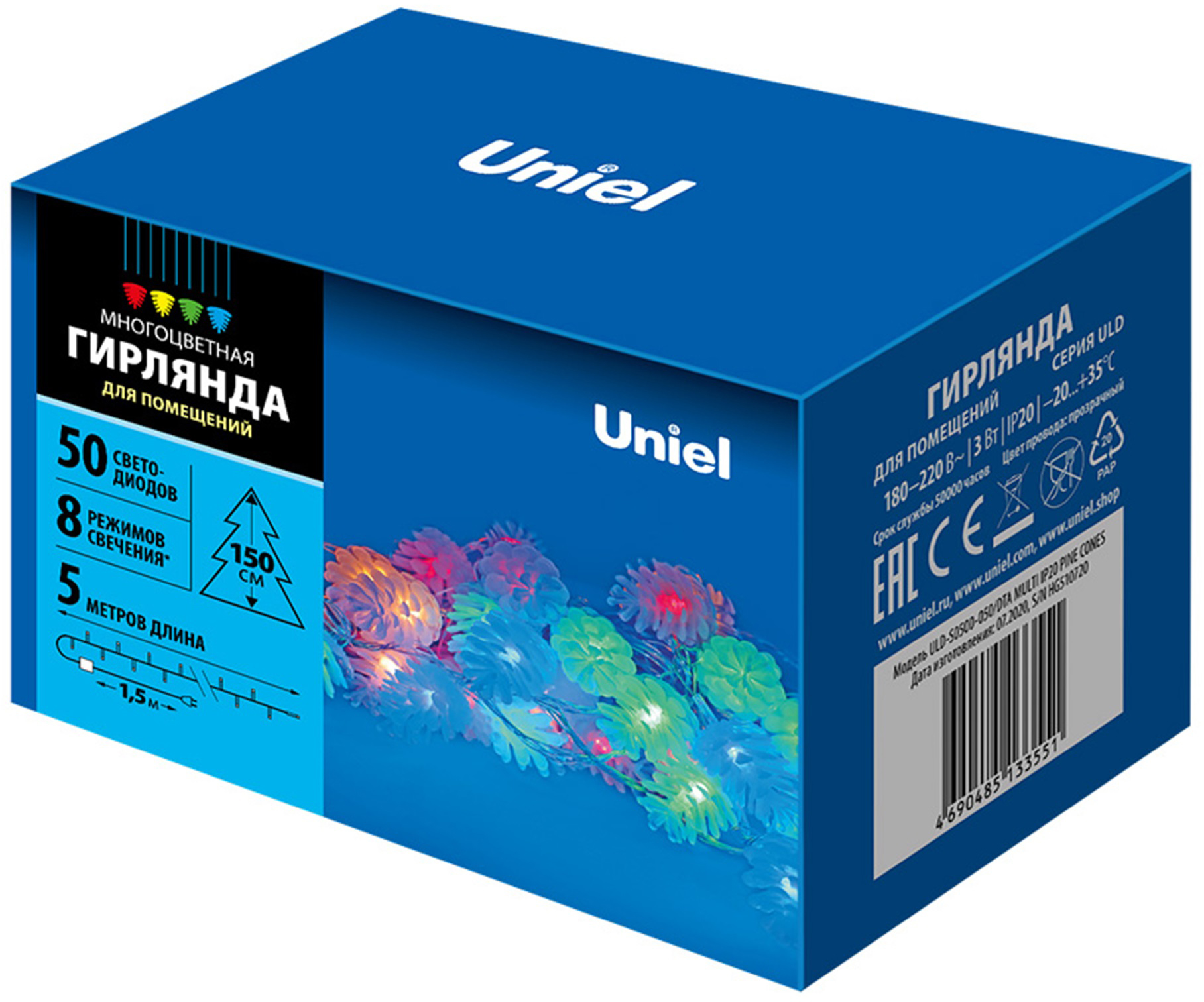 Гирлянда cветодиодная Uniel ULD-S0500-050/DTA Multi IP20 Pine Cones