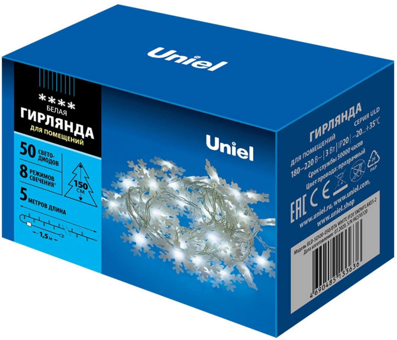 Гирлянда cветодиодная Uniel ULD-S0500-050/DTA White IP20 Snowflakes-2
