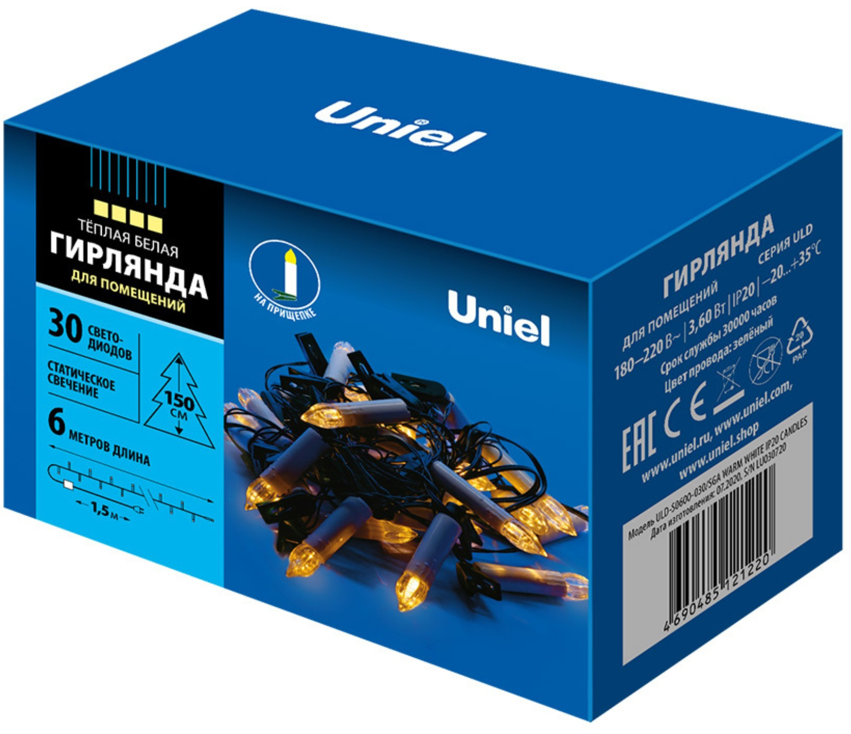 Гирлянда cветодиодная Uniel ULD-S0600-030/SGA Warm White IP20 Candles
