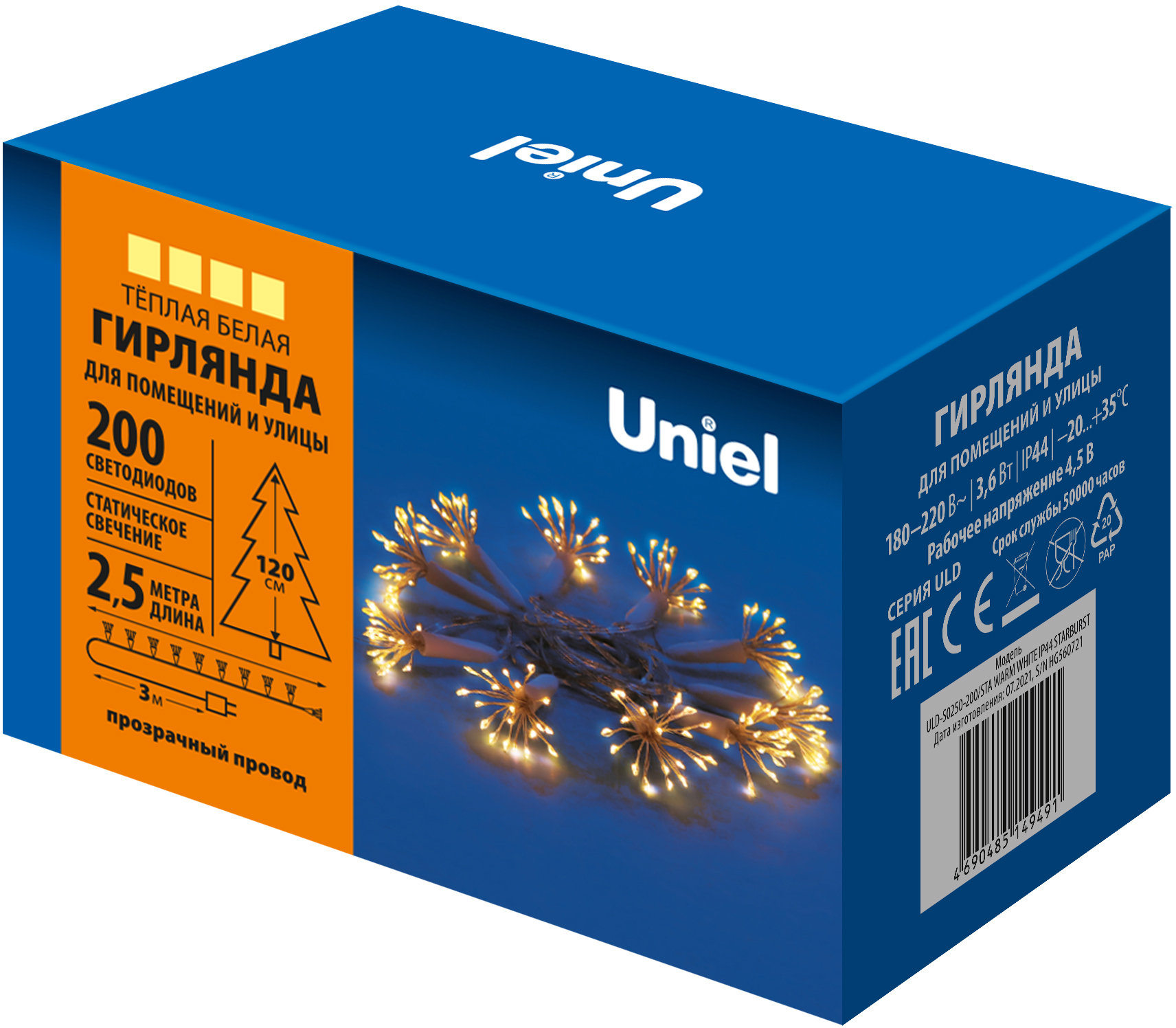 Гирлянда cветодиодная Uniel ULD-S0250-200/STA Warm White IP44 Starburst
