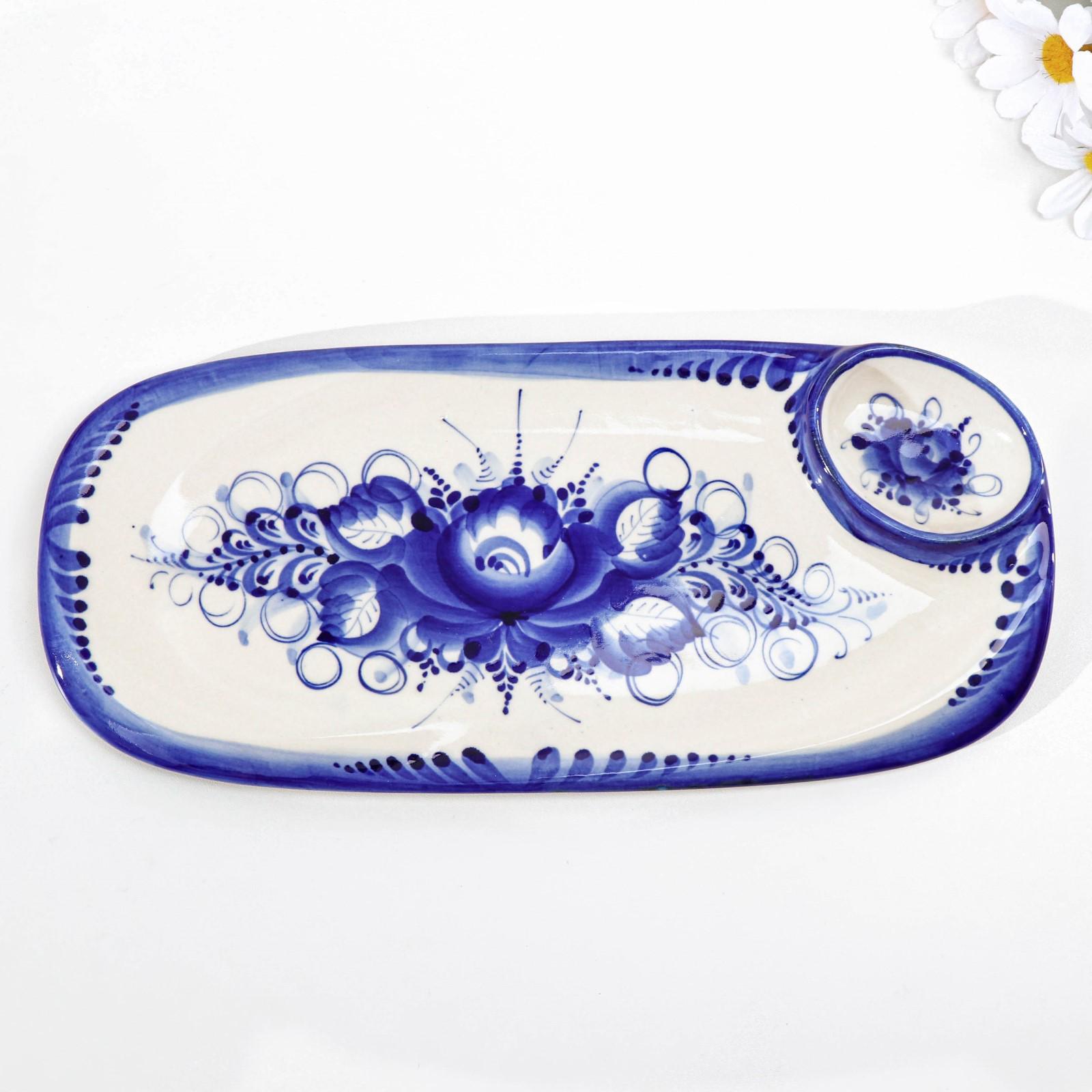 Блюдо под шашлык, 29х13 см, гжель, фарфор