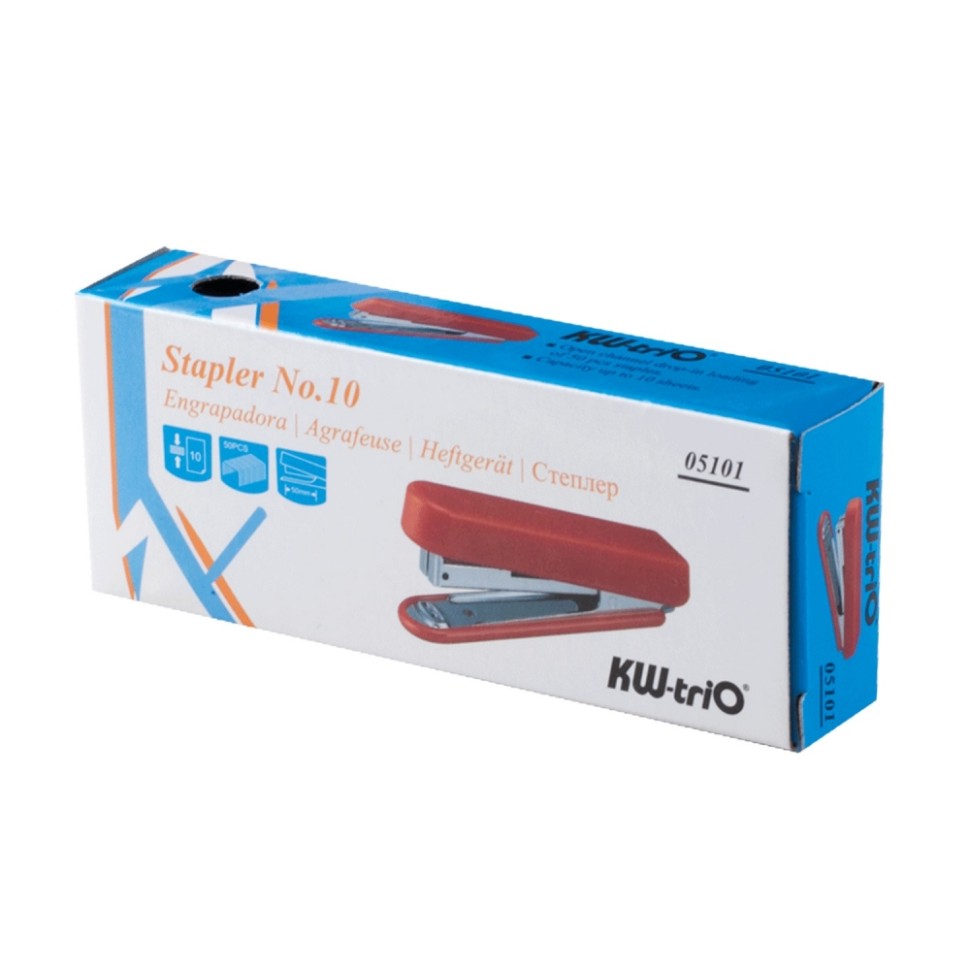 Степлер имеет металлический механизм. Максимальное количество скрепляемых листов: 10. Подходящие скобы: № 10. Глубина закладки бумаги: 50 мм. Виды сшивания степлером: закрытый. Основной цвет корпуса: ассорти. Дополнительный цвет корпуса: нет. Поставляется в нескольких вариантах цвета (без возможности выбора): да. Высота корпуса: 44 мм. Длина корпуса: 92 мм. Ширина корпуса: 24 мм. Упаковка: картонная коробка Бренд - KW-TRIO. Производитель - Китай. Артикул - -5101. Штрихкод - 4714218081718