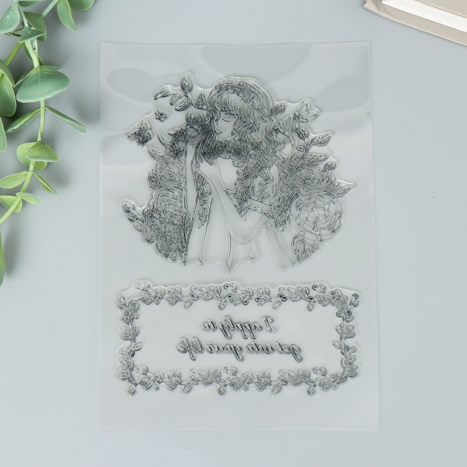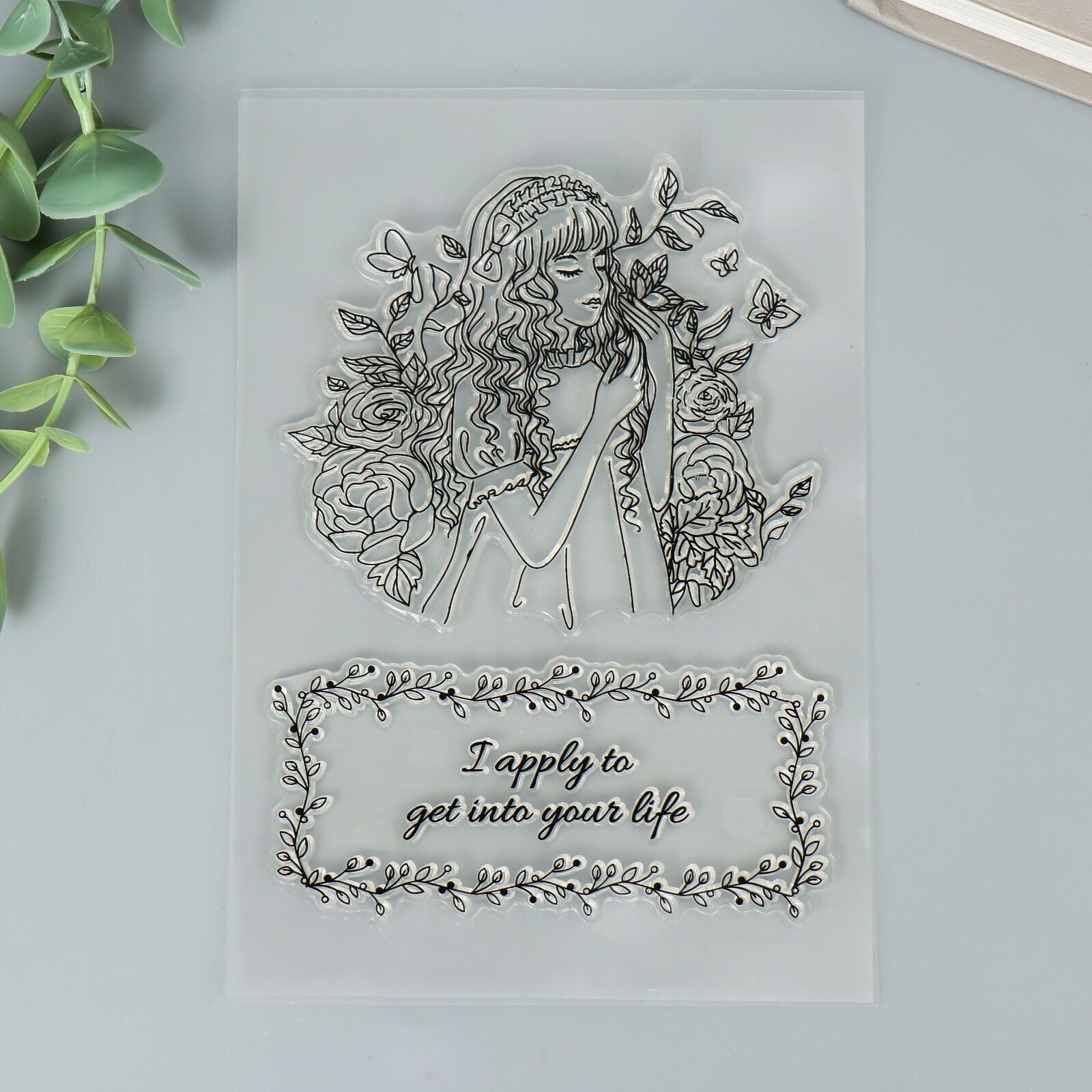 Штамп для творчества силикон "Девочка в саду" 16х11 см