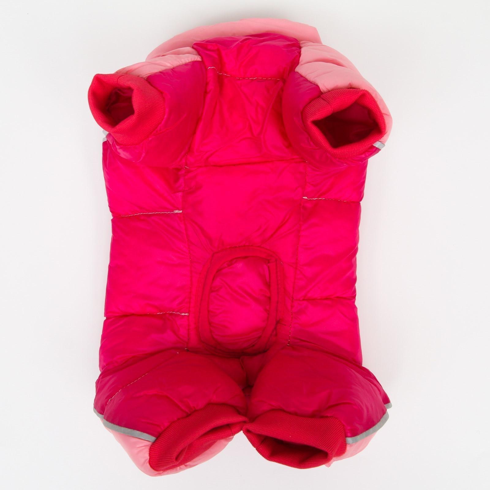 Зимний комбинезон для собак застегивается молнией на спине, благодаря этому животик питомца максимально защищен от ветра.