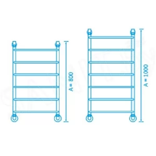 Полотенцесушитель Маргроид Вид 4 с полкой, боковое подключение слева, форма - лесенка, отлично впишется в любой по стилю интерьер ванной комнаты.