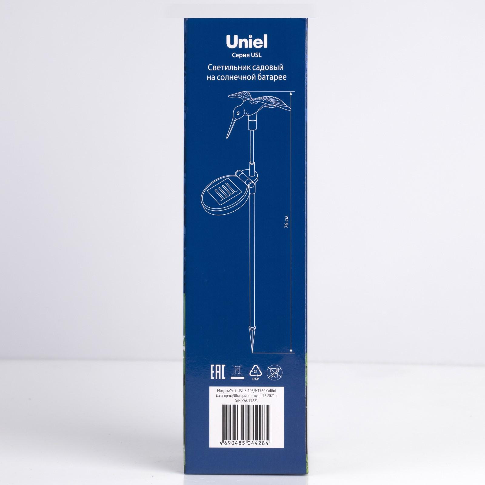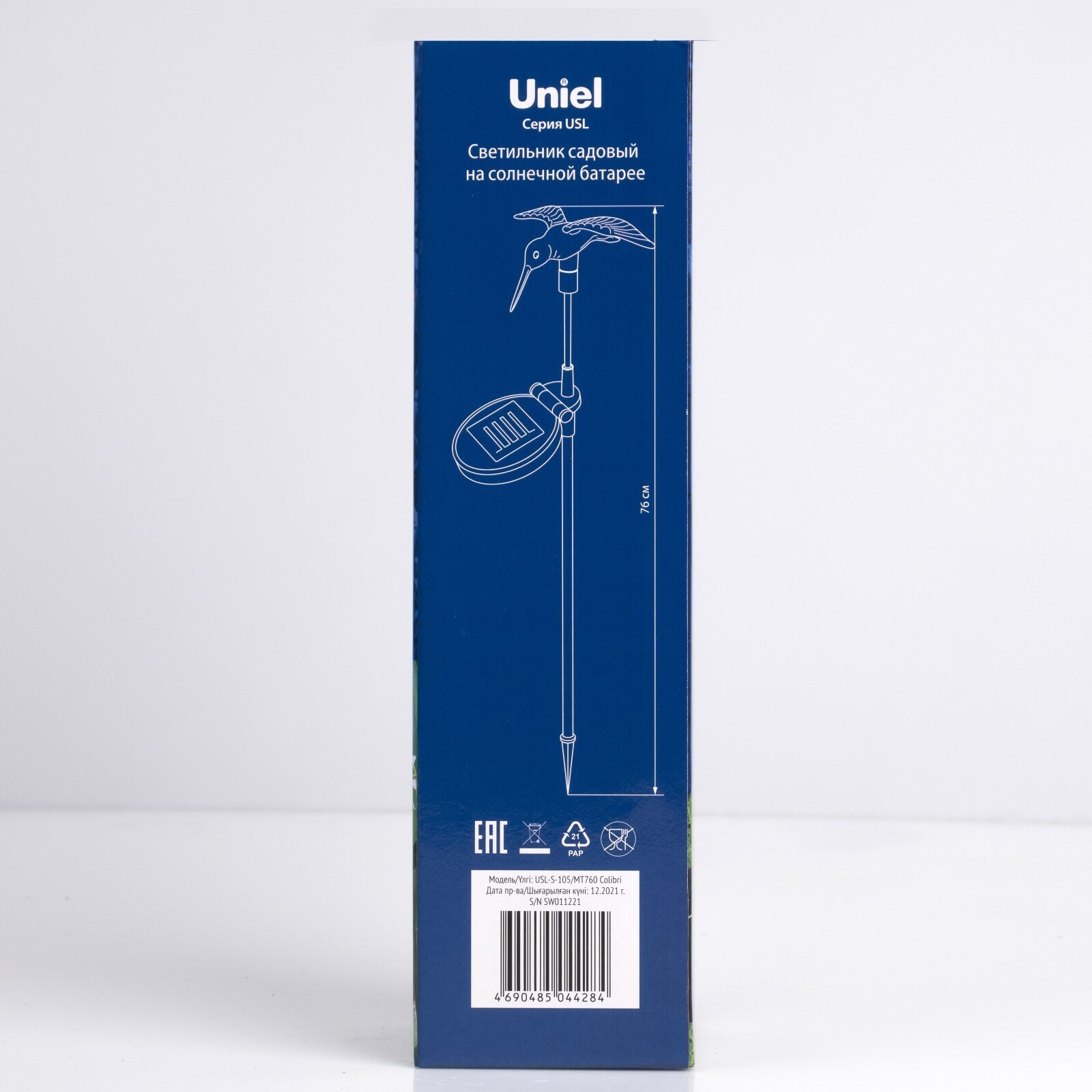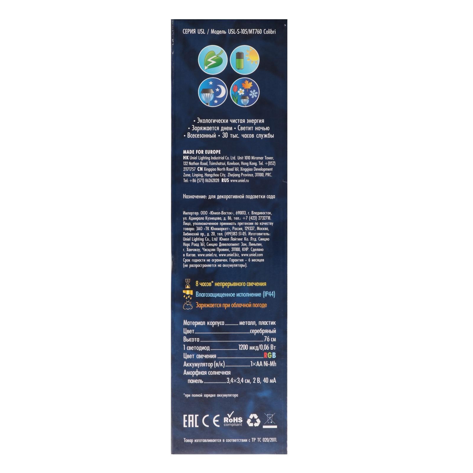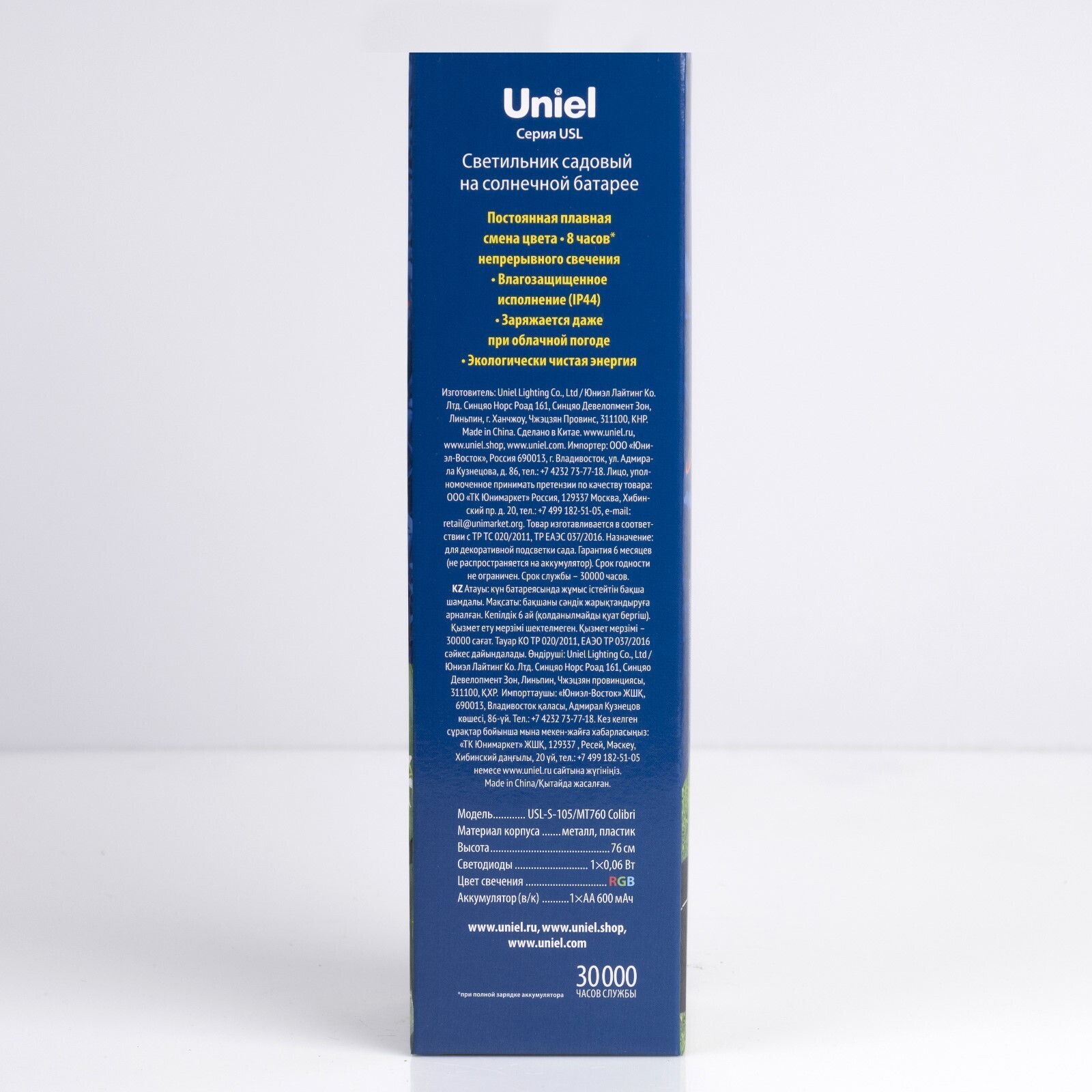 Садовый светильник Uniel Colibri на солнечной батарее, 13 × 76 × 8 см, свечение мульти (RGB)