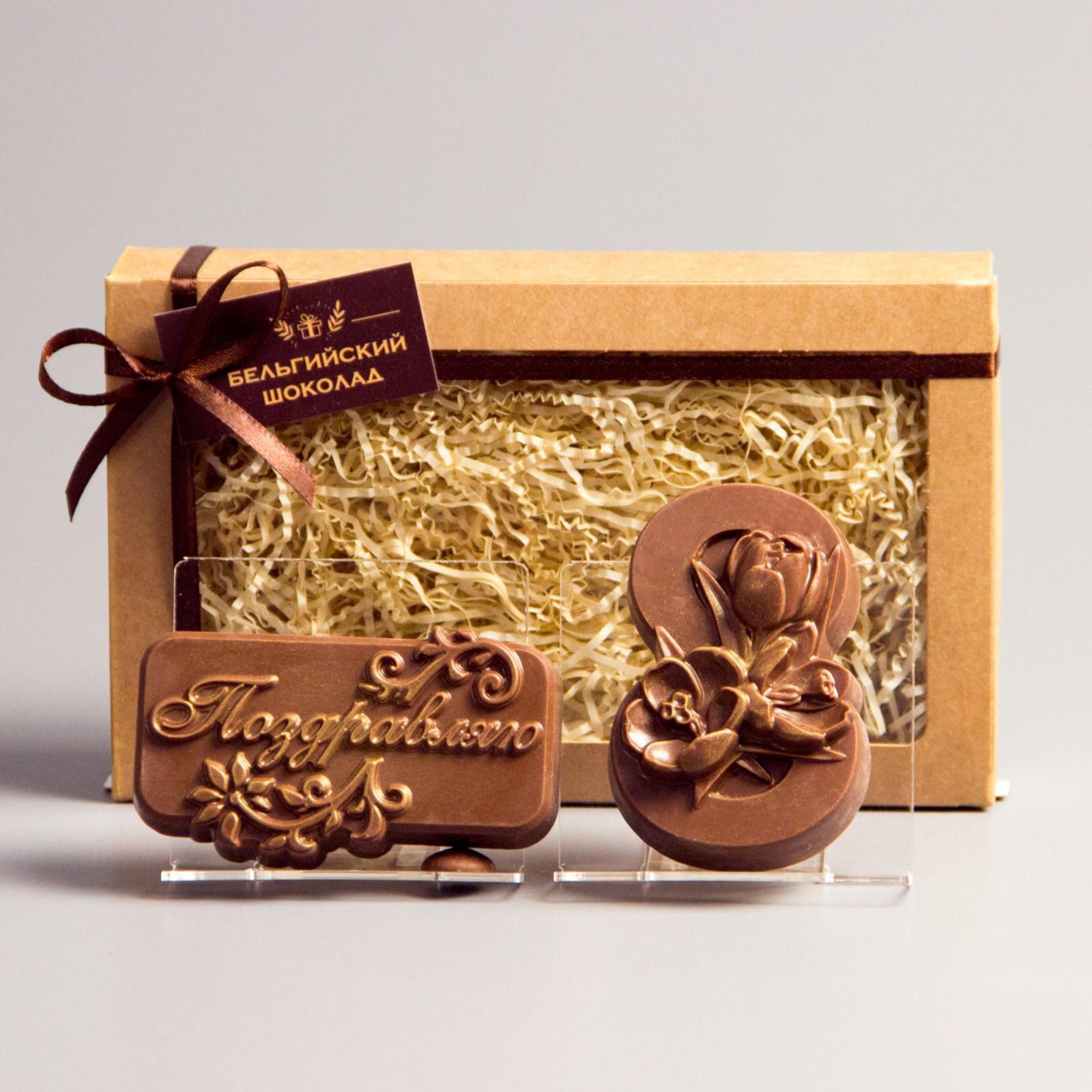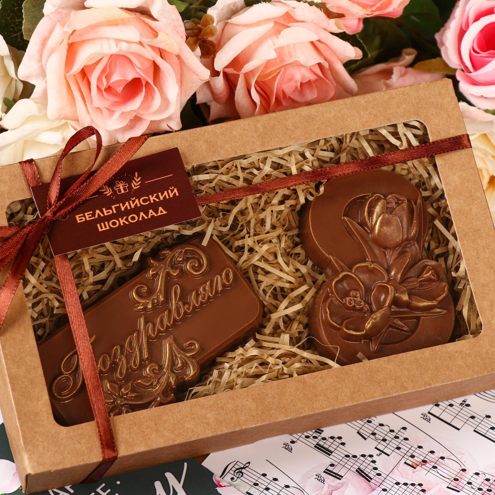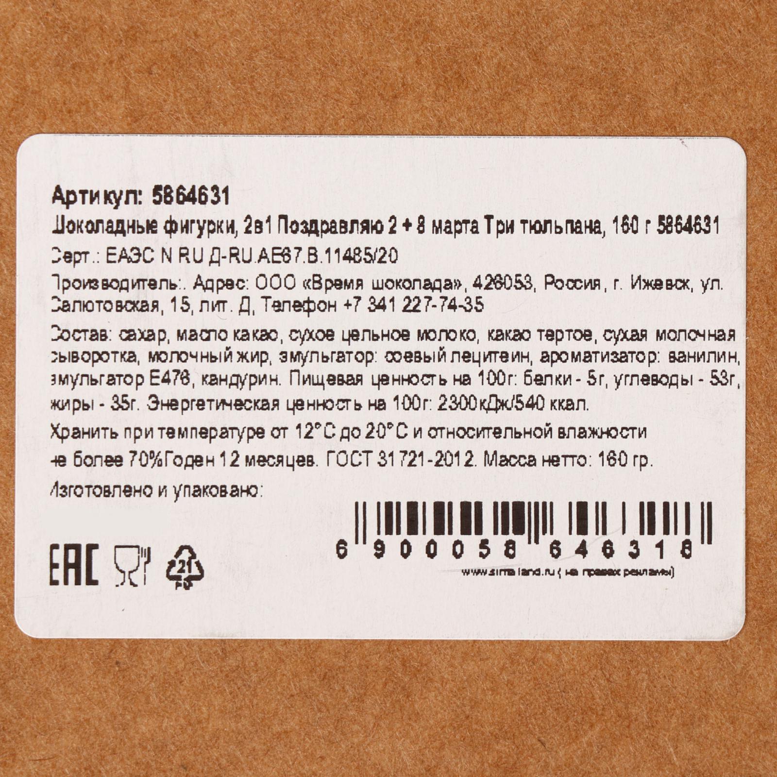 Шоколадные фигурки, 2 в 1 «Поздравляю + 8 марта. Три тюльпана», 160 г