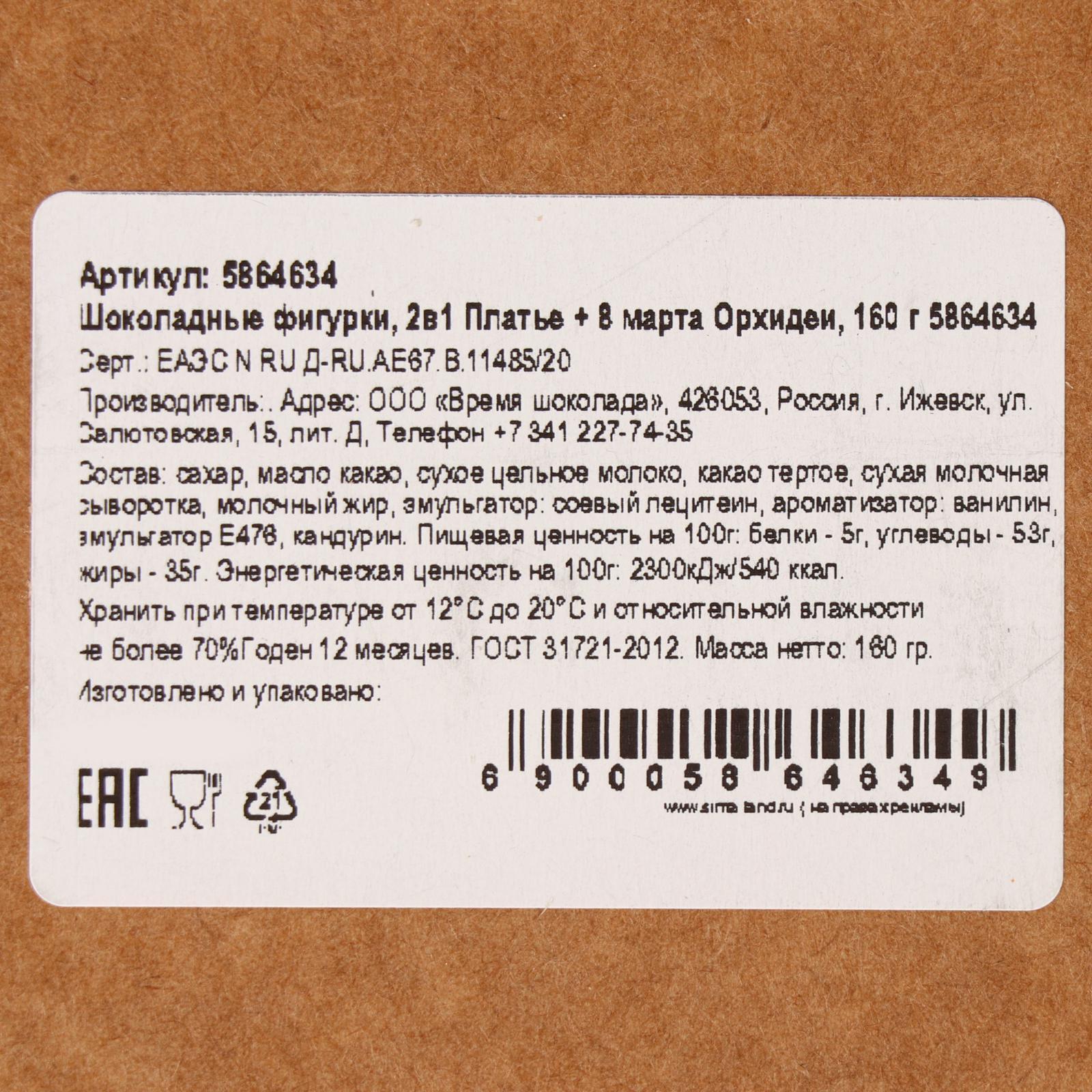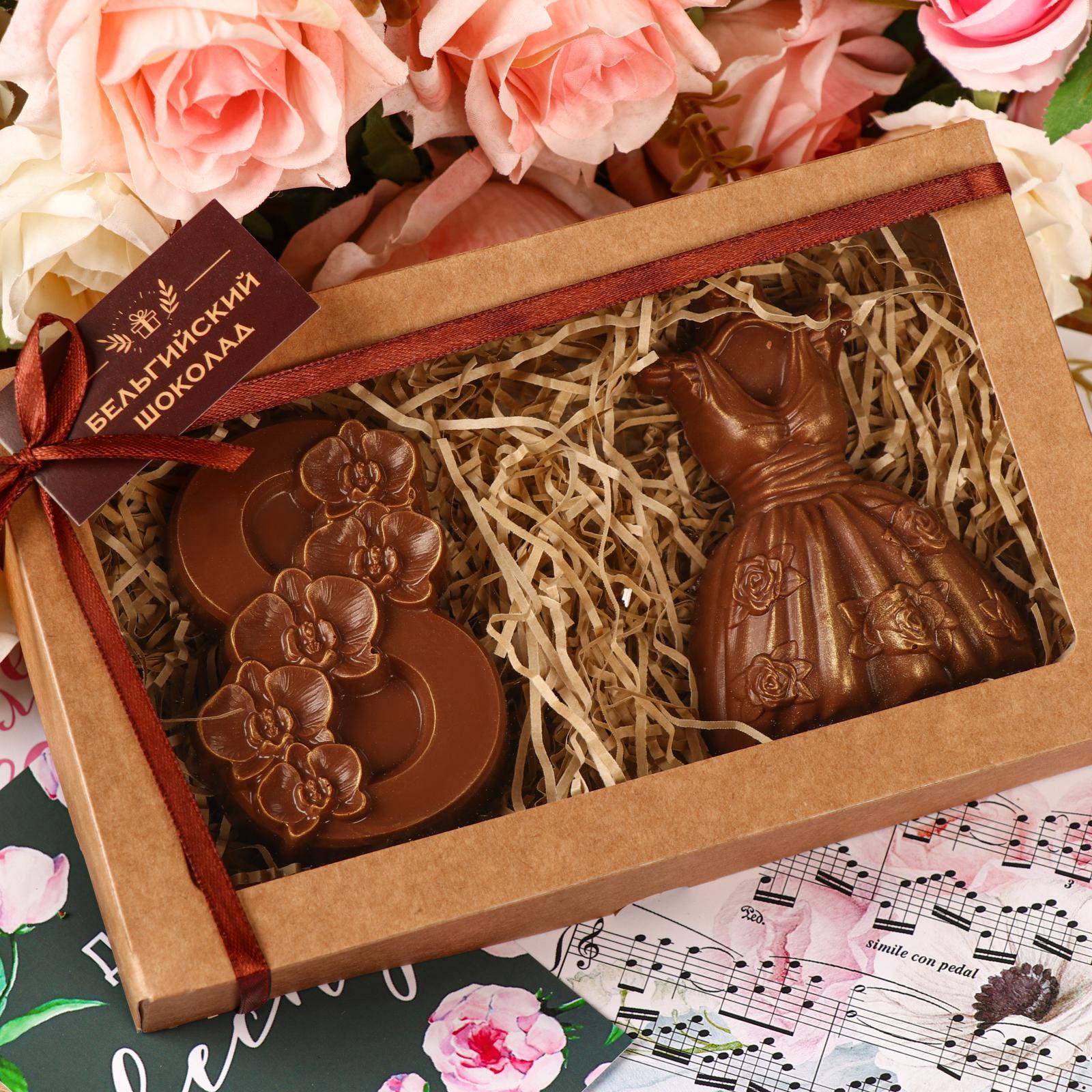 Шоколадные фигурки, 2 в 1 «Платье + 8 марта. Орхидеи», 160 г