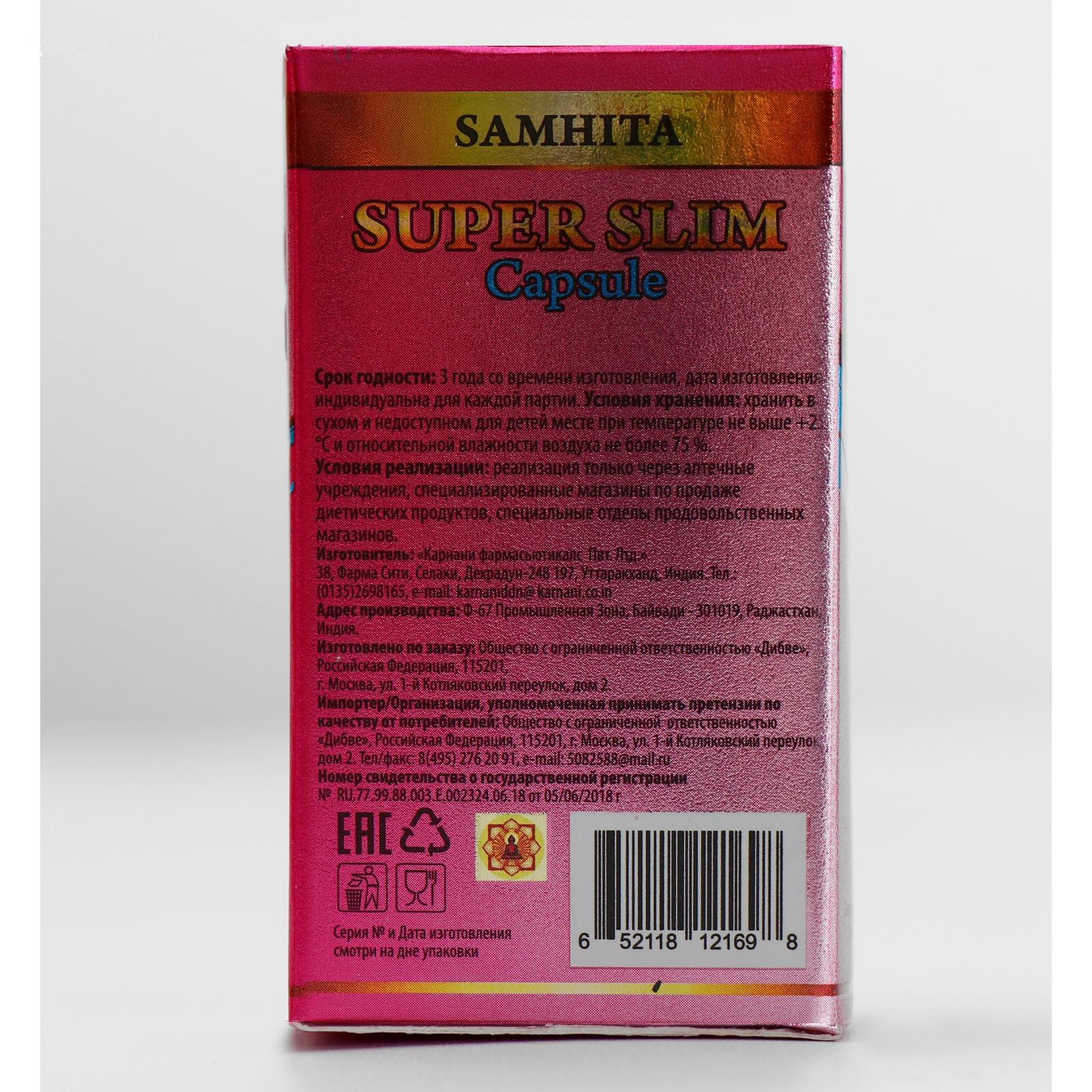 Самхита Супер Слим, благодаря уникальному сочетанию трав и аюрведической рецептуре, обеспечивает сжигание жира с пролонгированным эффектом, восстановление метаболизма, блокирование новых жировых отложений и восстановление упругости кожи, улучшает состояние ногтей и волос, работу сердца и ЖКТ, устраняет запоры, омолаживает организм в целом.