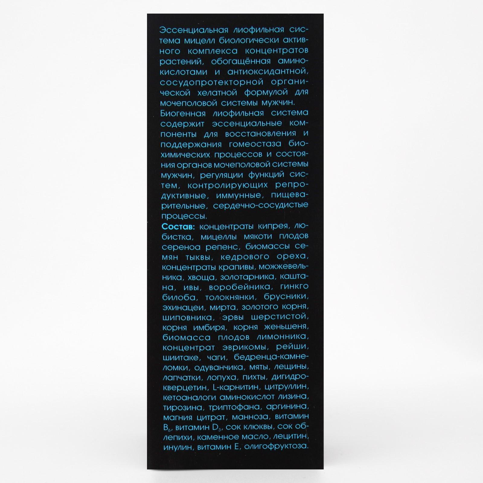 Лиофильная биосистема рекомендована для мужчин в качестве восстанавливающего, профилактического, регулирующего средства для функций и состояния органов мочеполовой системы.