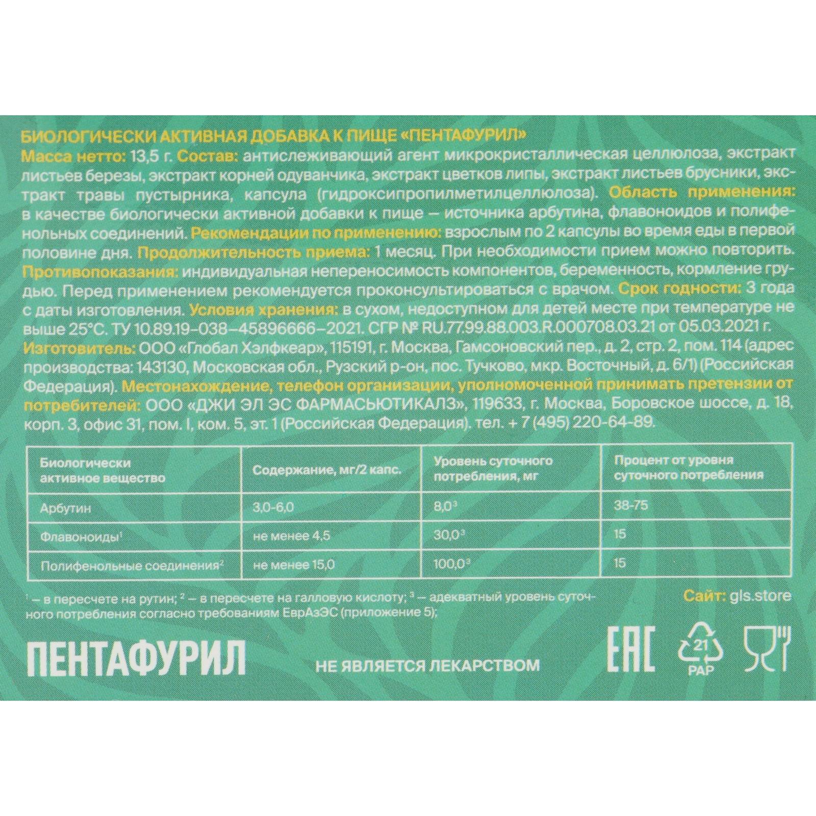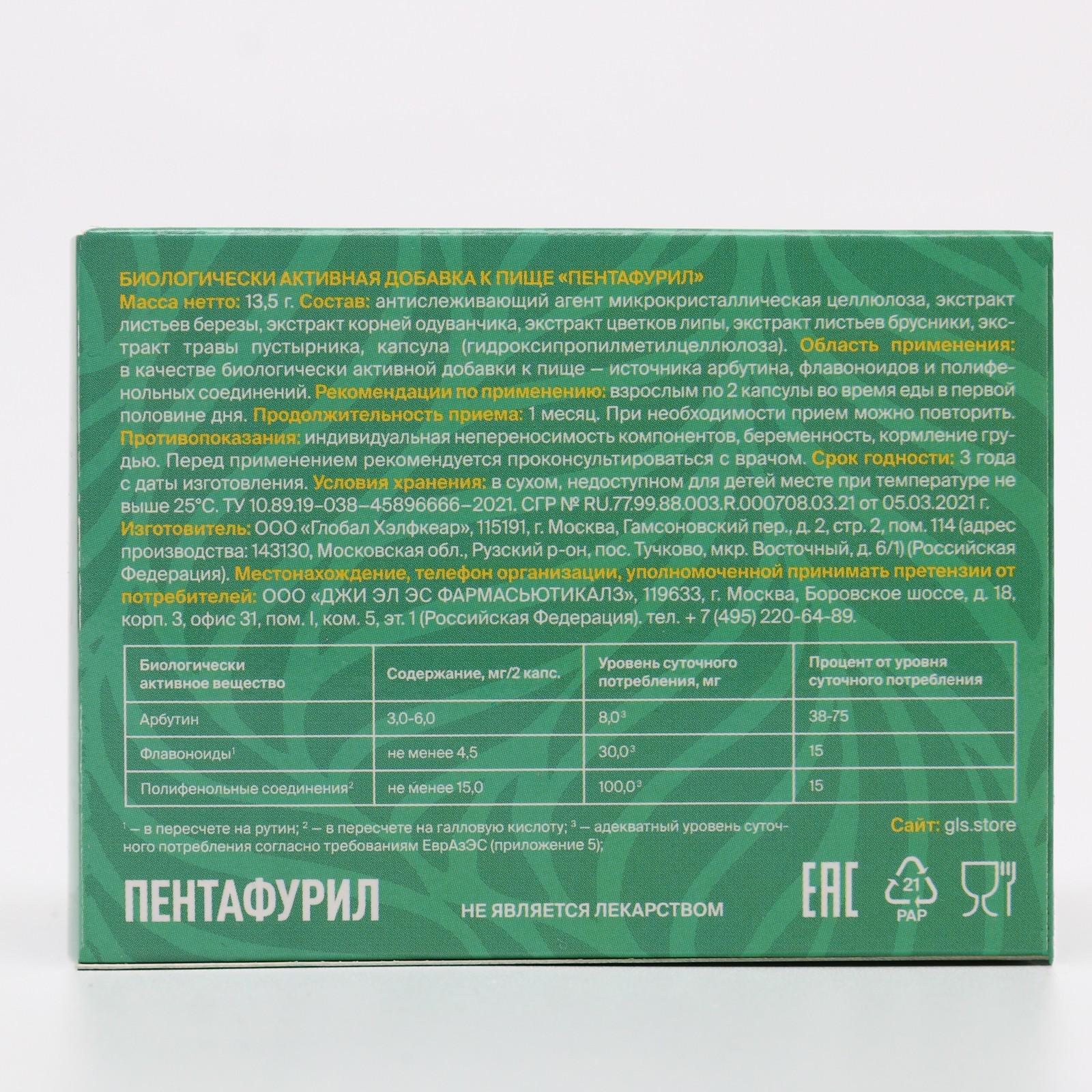 Мочегонное средство в таблетках «Пентафурил», от отёков тела и лица, 30 капсул по 350 мг