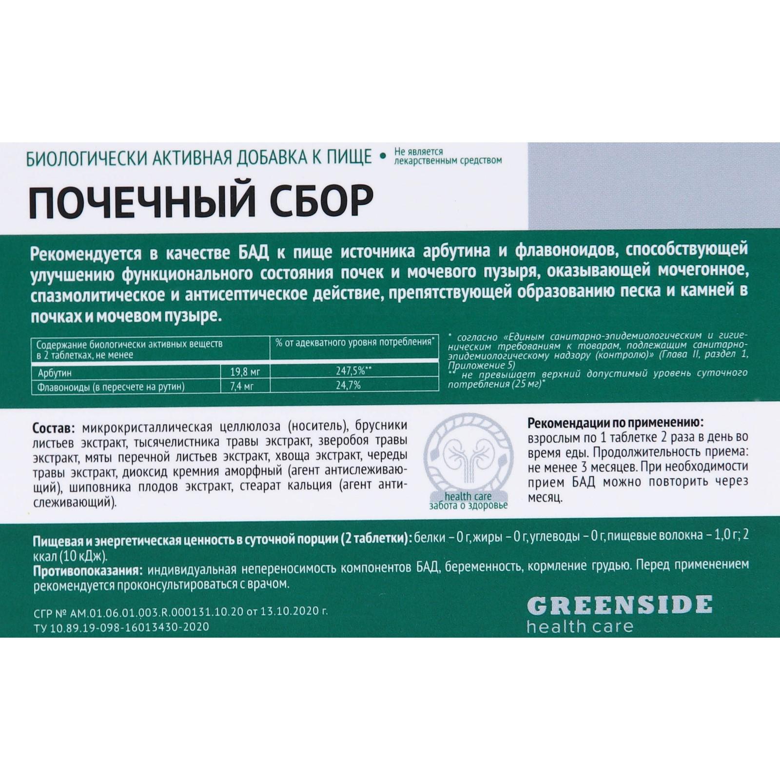 Состав: микрокристаллическая целлюлоза (носитель), брусники листьев экстракт, тысячелистника травы экстракт, зверобоя травы экстракт, мяты перечной листьев экстракт, хвоща экстракт, череды травы экстракт, диоксид кремния аморфный (агент антислеживающий), шиповника плодов экстракт, стеарат кальция (агент антислеживающий).