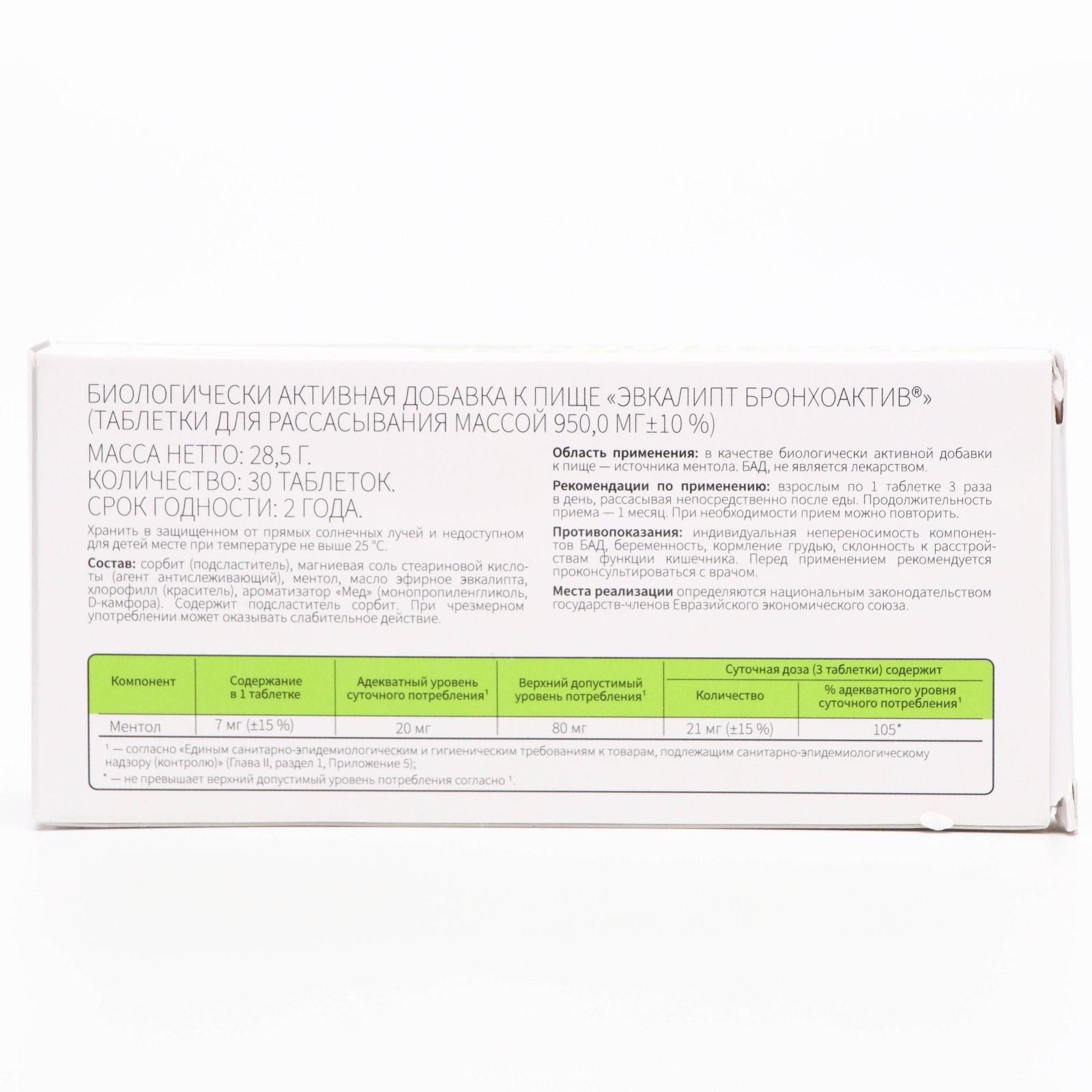"Эвкалипт бронхоактив", 30 таблеток по 950 мг