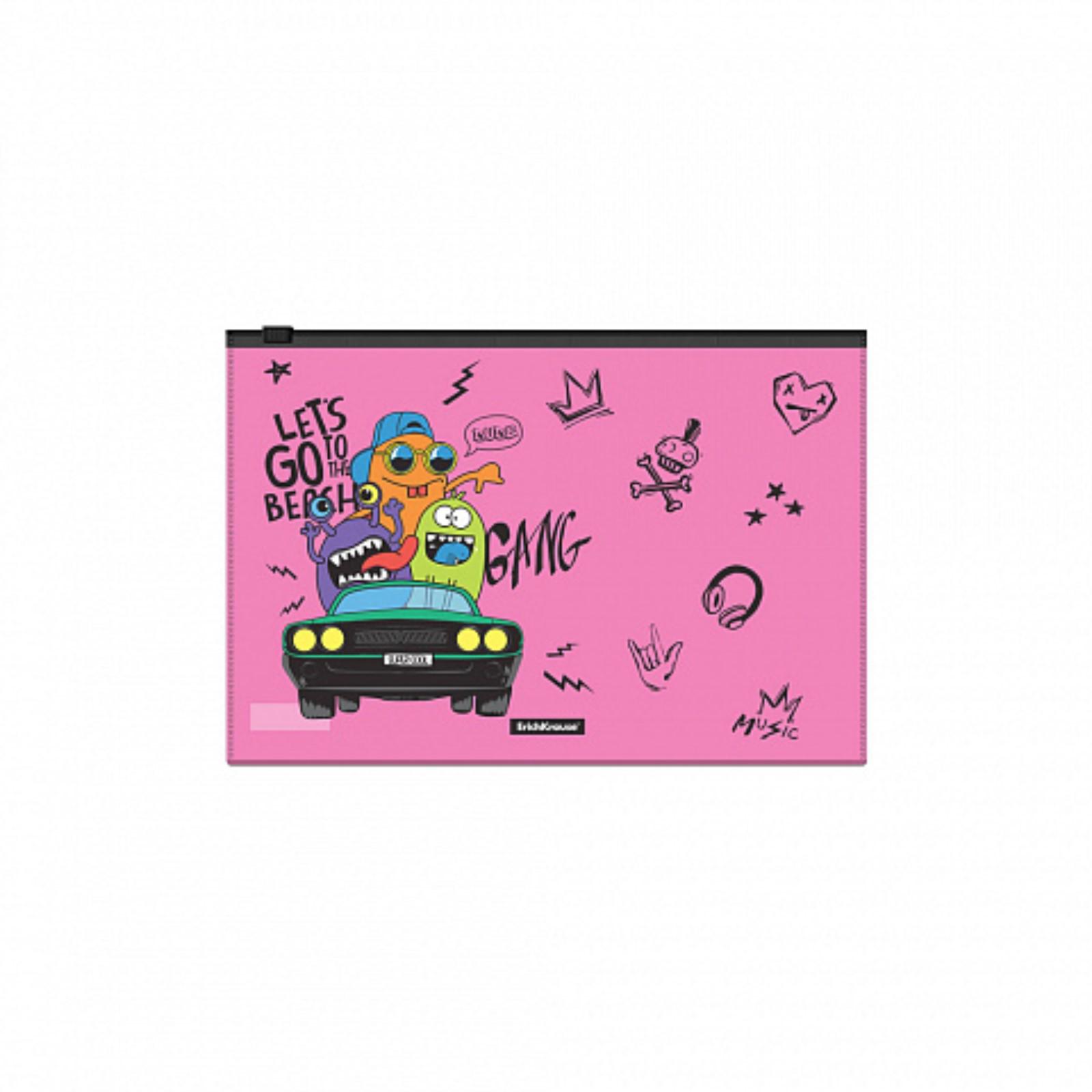 Папка конверт на ZIP-молнии B5 (289х214 мм), 180 мкм, ErichKrause Funny Monsters, полупрозрачная, микс