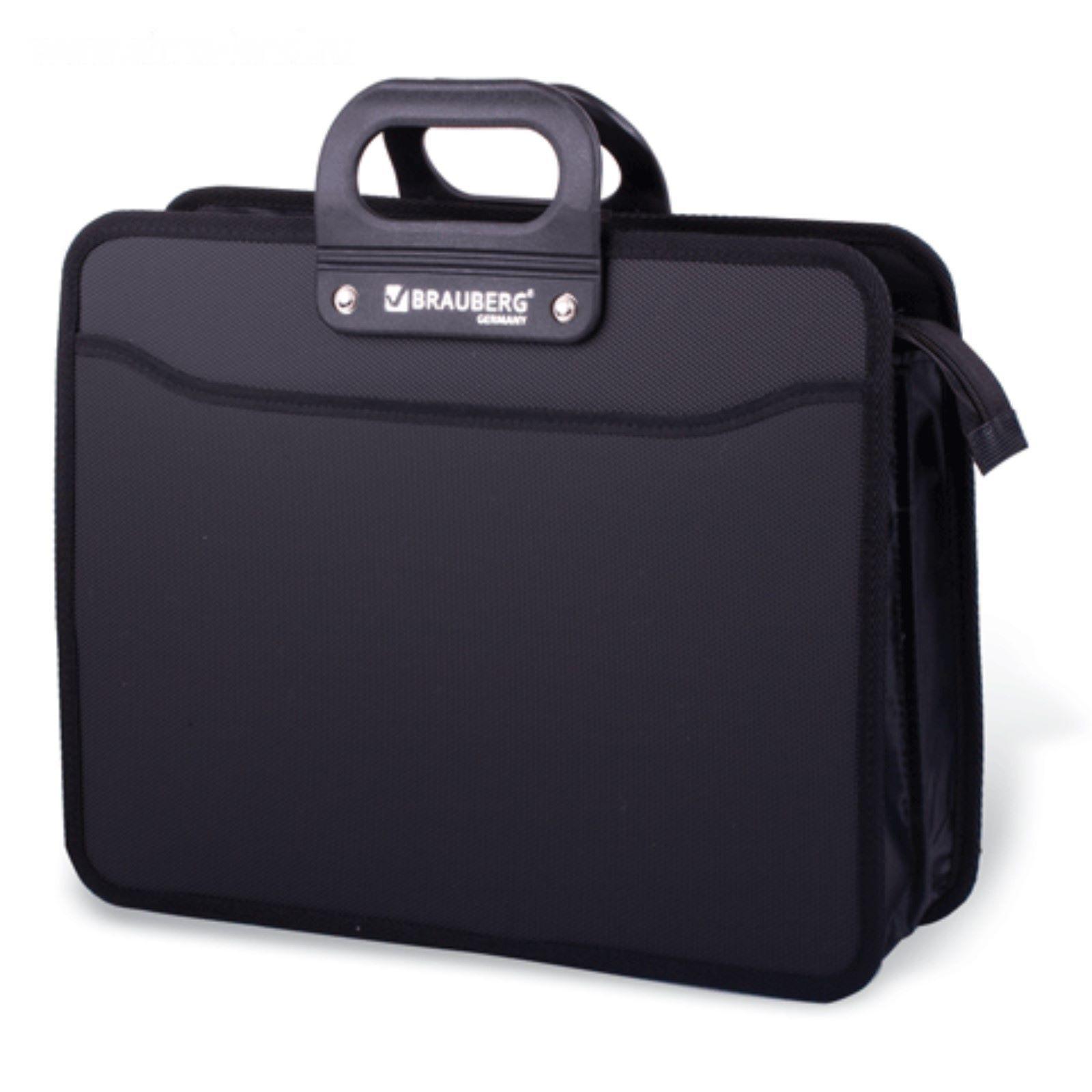 Портфель пластиковый А4 BRAUBERG, 3 отделения, 390 х 315 х 120 мм, на молнии, чёрный