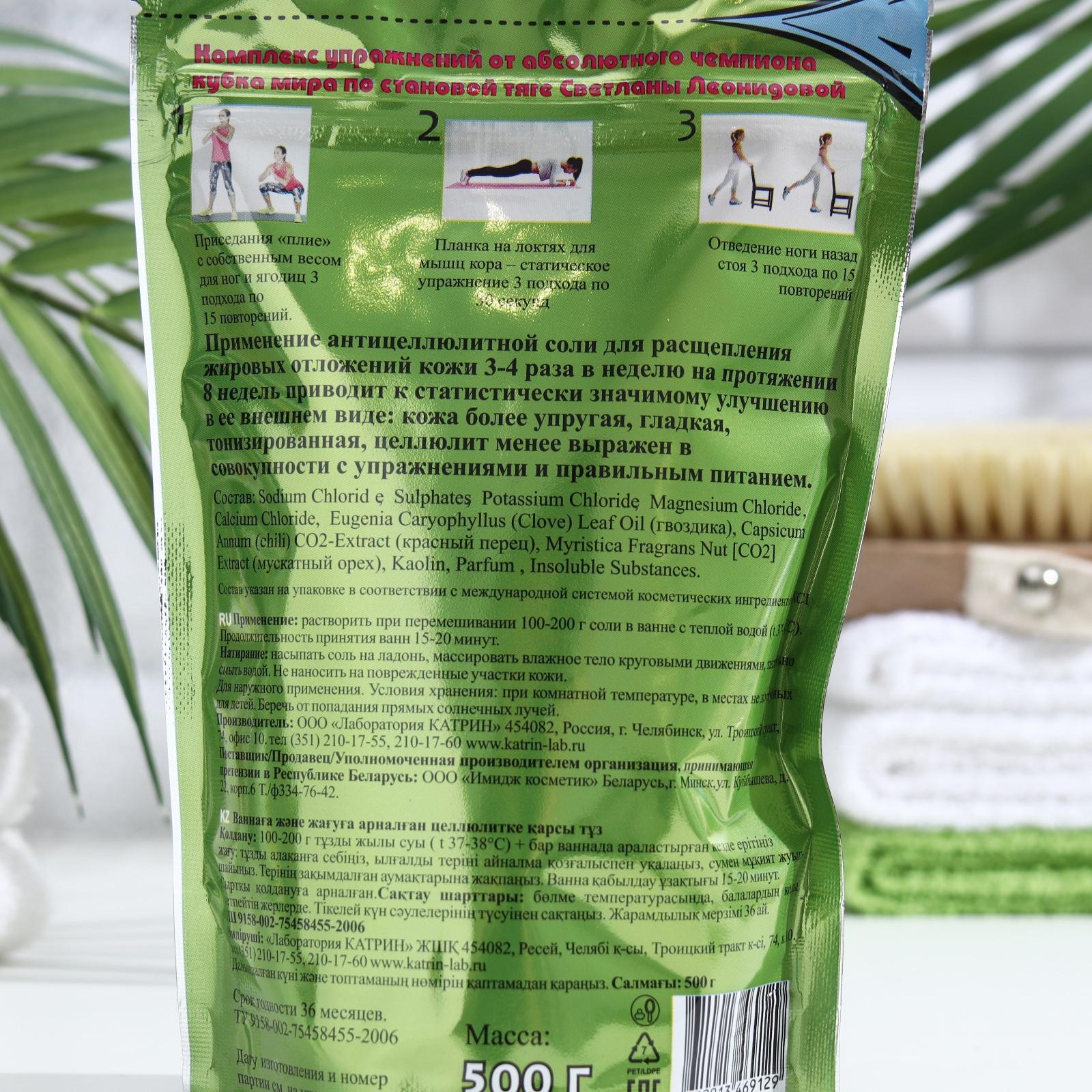 Применение антицеллюлитной соли для расщепления жировых отложений кожи 3-4 раза в неделю на протяжении 8 недель приводит к статистически значимому улучшению в её внешнем виде: кожа более упругая, гладкая, тонизированная, целлюлит менее выражен в совокупности с упражнениями и правильным питанием.