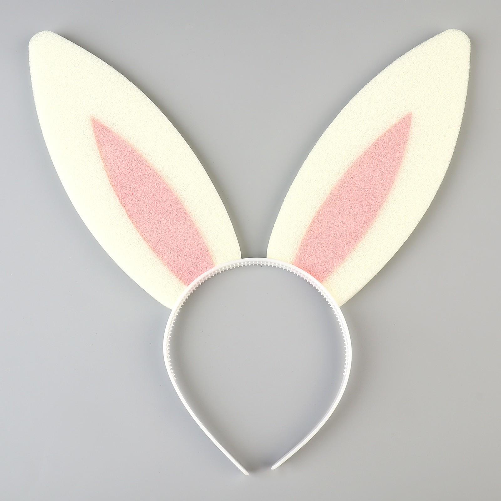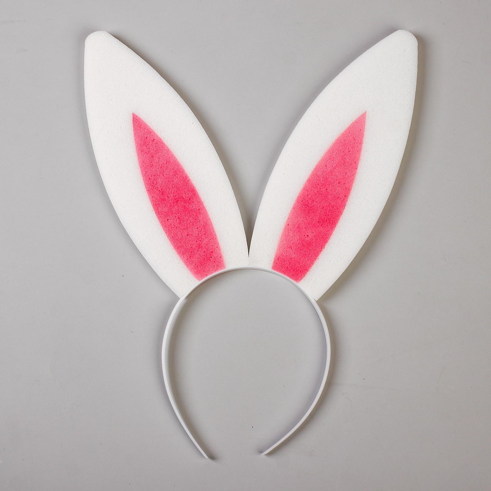 Карнавальный ободок «Уши зайца», поролон, цвет бело-розовый
