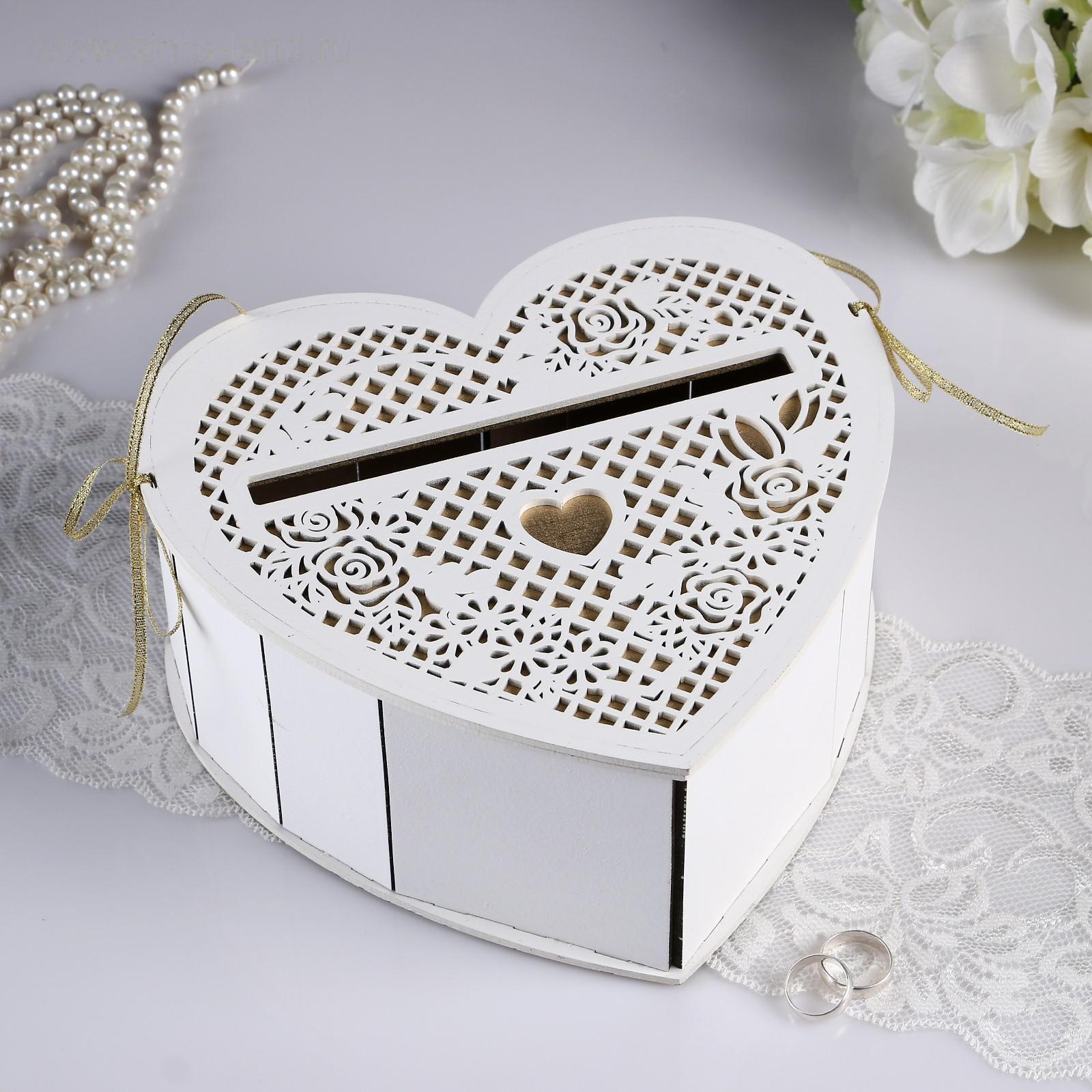 Семейный банк "Сердце", 23х21,5х10 см, Белый-золото