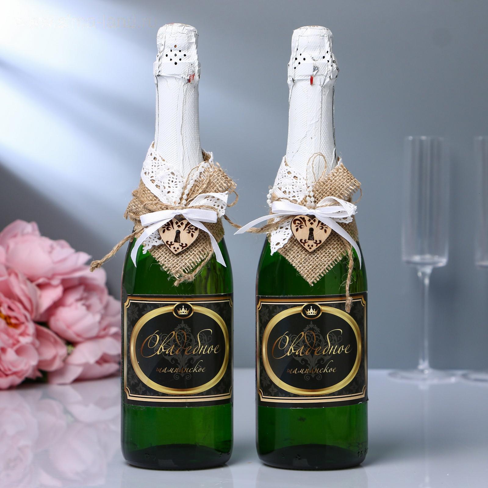 Украшение на шампанское "Мария", мешочная ткань, 14х16 см