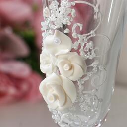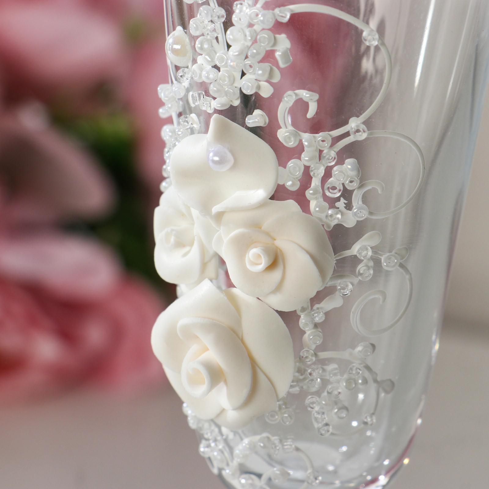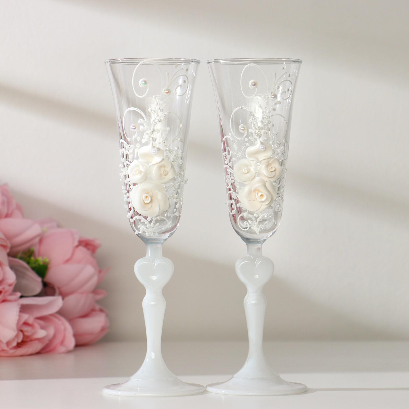 Набор свадебных бокалов "Розы", с лепниной и бисером, белый