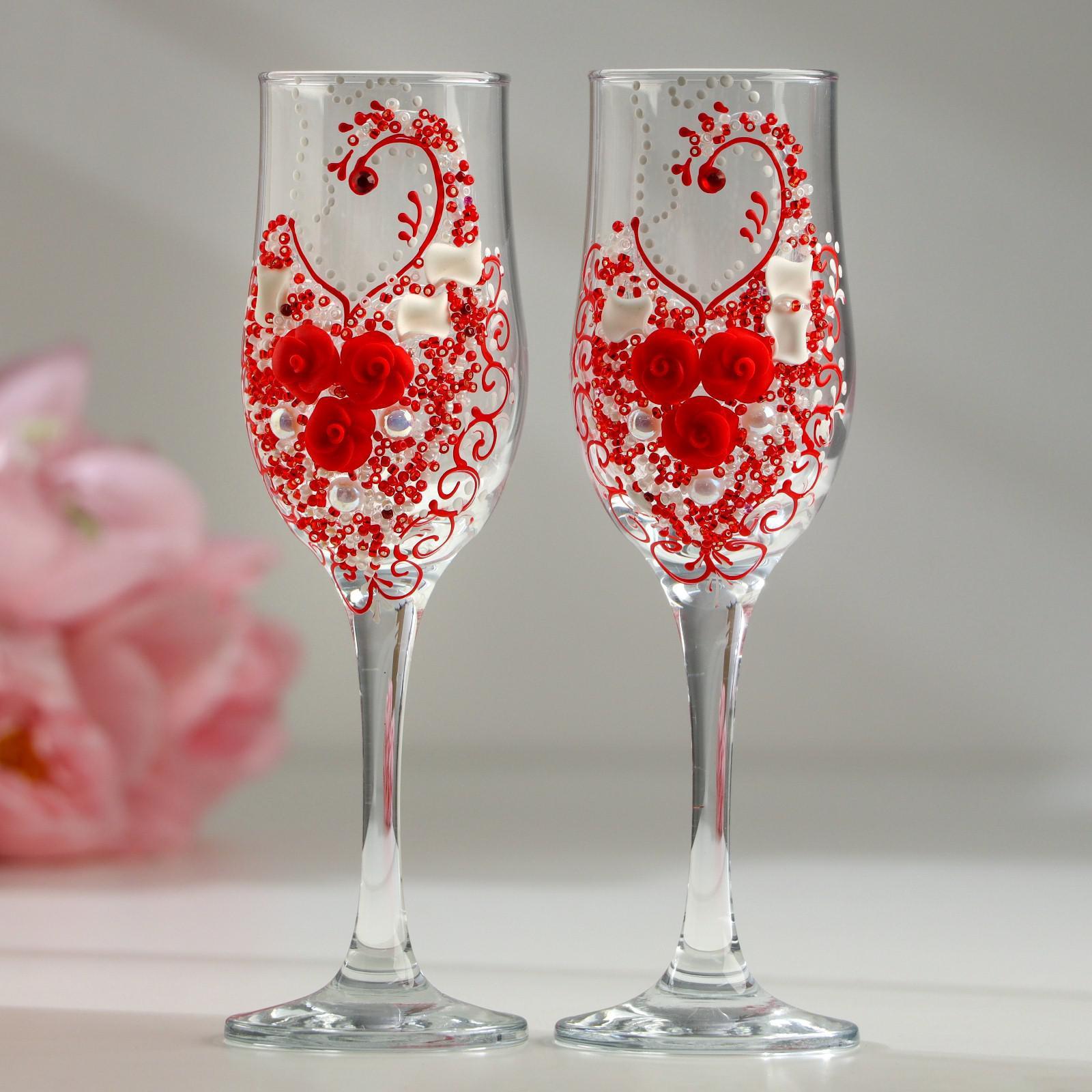 Набор свадебных бокалов "Шик", с розочками, красный