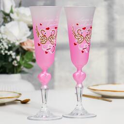 Набор свадебных бокалов «Совет для любовь», с сердцем на ножке, розовый