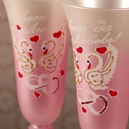 Существует давняя традиция — бить фужеры на счастье после регистрации брака. Считается, что звон разбивающегося стекла и его осколки создают защиту от злых духов для новой семьи. Если вы планируете придерживаться такой традиции, рекомендуем вам приобрести две пары фужеров, одни — для битья, вторые — на стол молодожёнов.