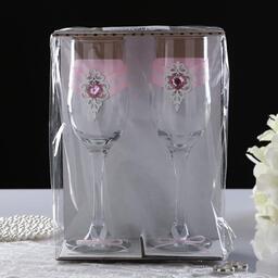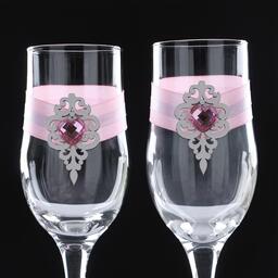 Набор свадебных бокалов "Прага", ручной работы, белый - розовый пастель, 6х6х20,5 см, 2 шт.