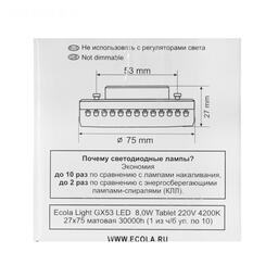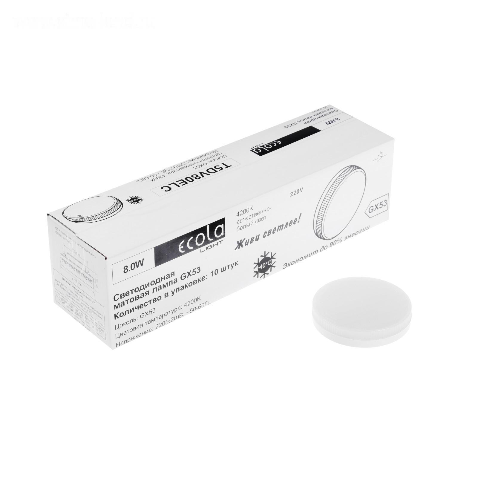 Лампа светодиодная Ecola Light, 8 Вт, GX53, 4200 K, 27x75 мм, матовое стекло