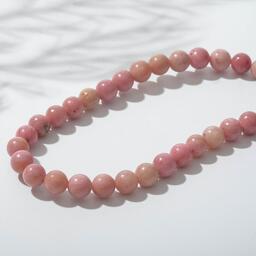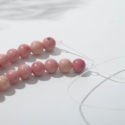 Круглые гладкие бусины сделаны из родонита. Оттенок может немного отличаться от представленного на фотографии в зависимости от настроек экрана. Бусины могут различаться по форме и размеру. Возможны неровности естественного происхождения.