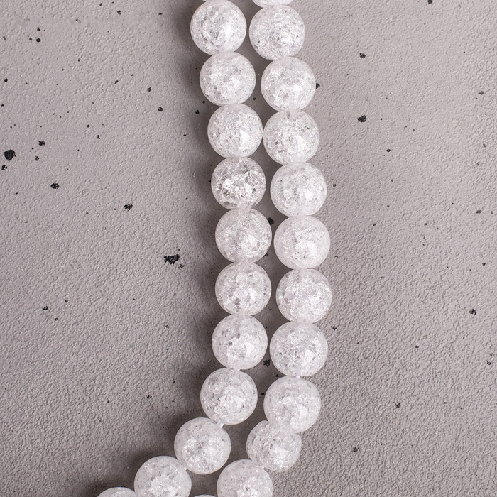 Бусины искусственного происхождения созданы из кварцевого песка, могут различаться по форме и размеру (быть немного сплюснутыми). Трещинки на бусинах могут со временем забиваться и становиться практически незаметными — это свойство всех бусин с эффектом кракелюра. Текстура восстанавливается обезжириванием.