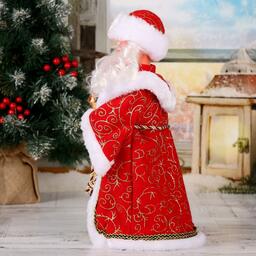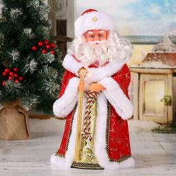 Дед мороз "Кудрявая борода" двигается, 37 см, красный